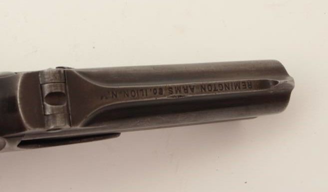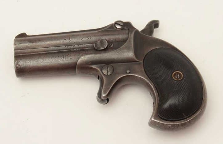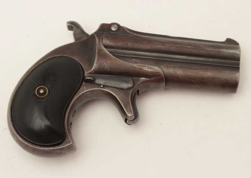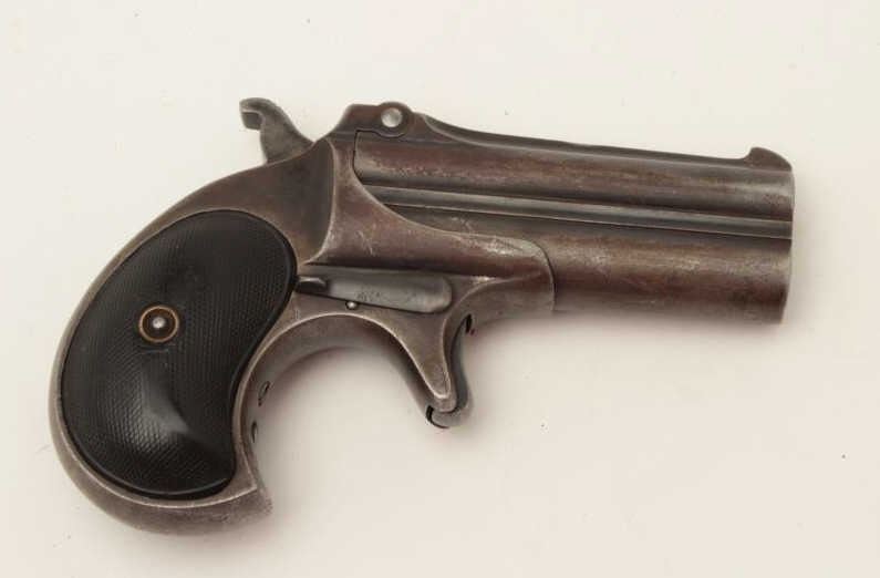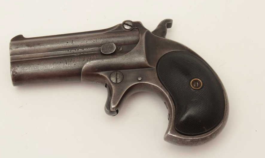Lot 570 Remington O/U Type 3 derringer, .41 caliber, checkered black hard rubber grips, S/N 965, dark pati