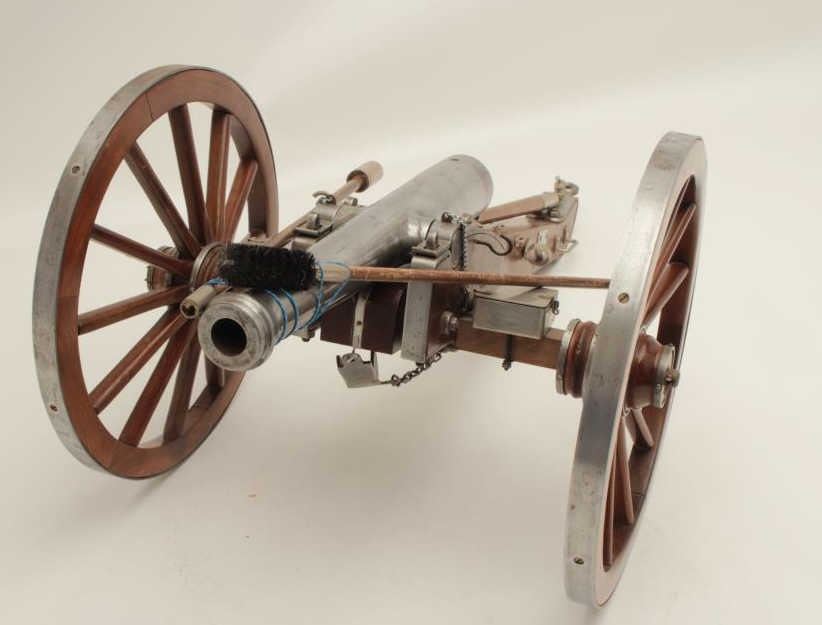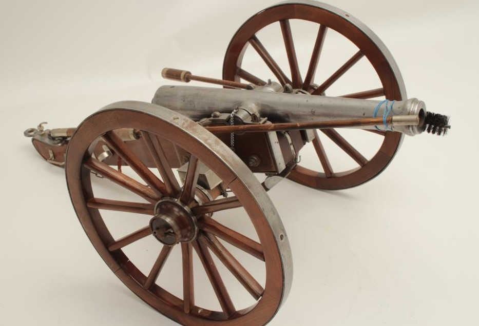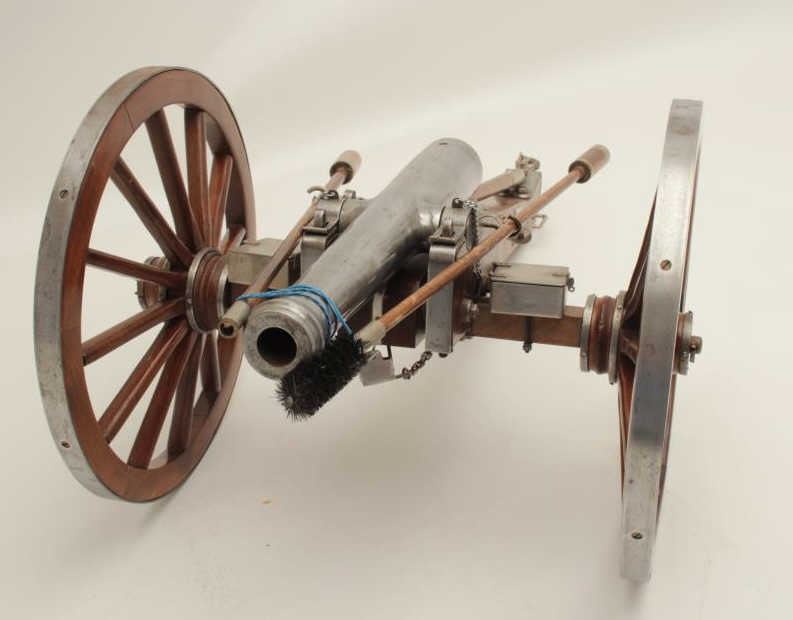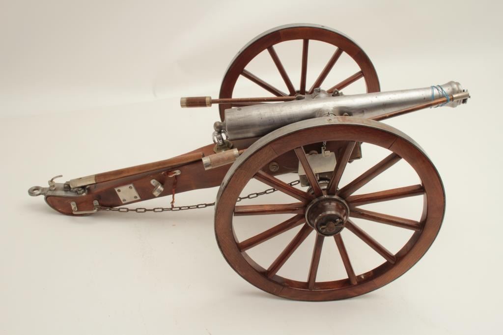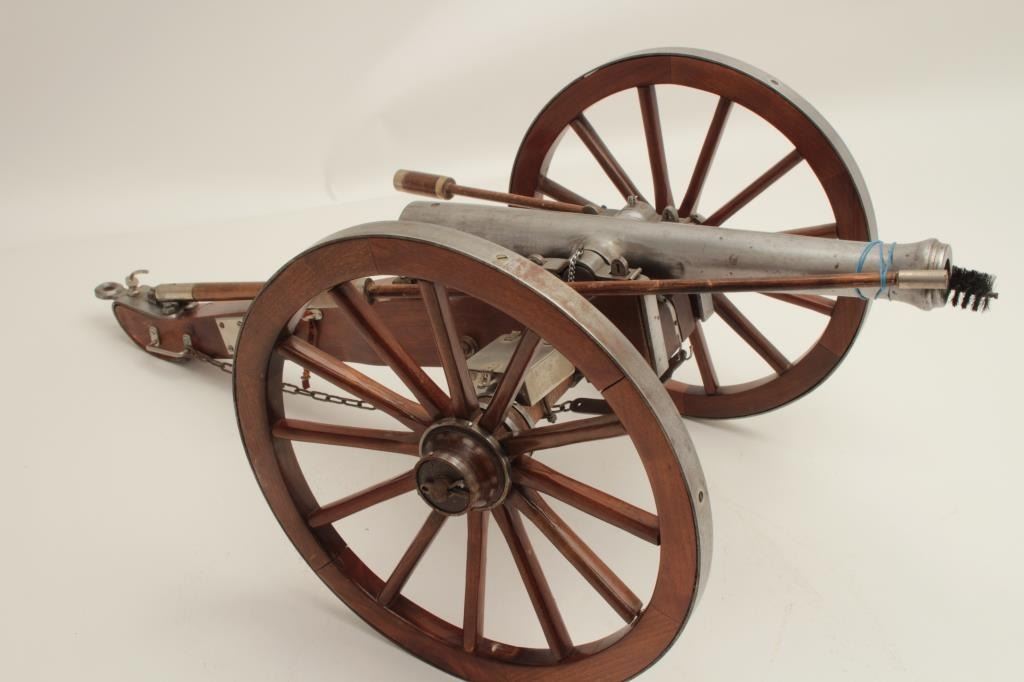 Lot 576 Finely constructed display cannon and wood carriage, approximately 28” long by 16” wide by 12” in