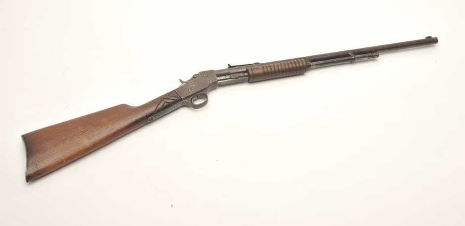 Lot 634 Stevens Visible Loader pump rifle, .22 Short, Long or Long Rifle caliber, serial #OFQ24. The rifl