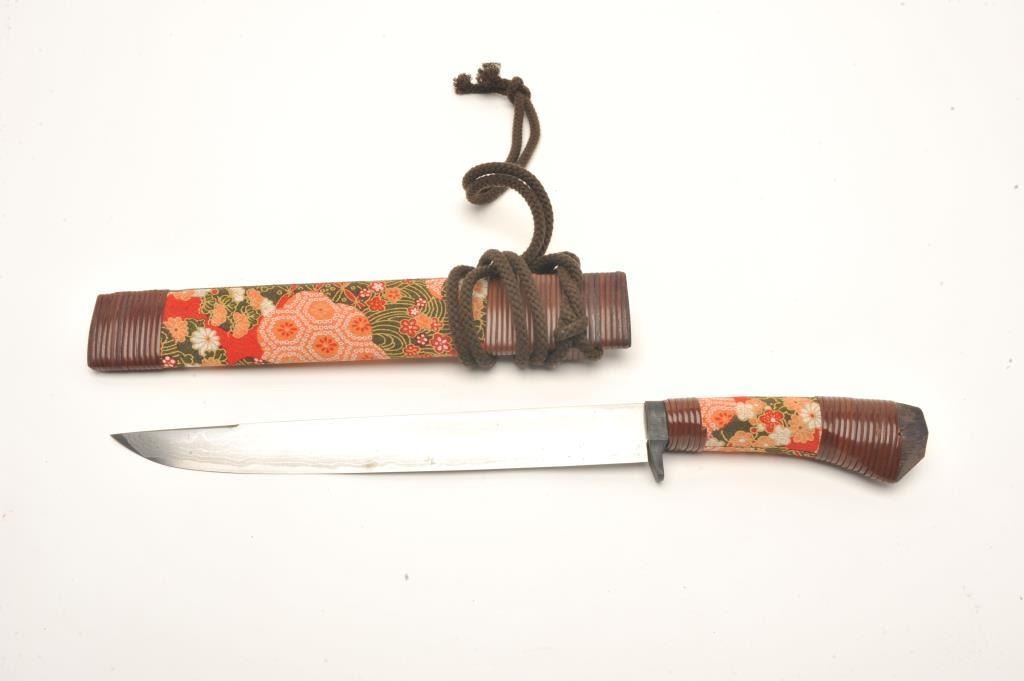 Lot 645 Traditional and high quality Japanese bonsai knife with signed and damascened blade. Measures 16 ¾