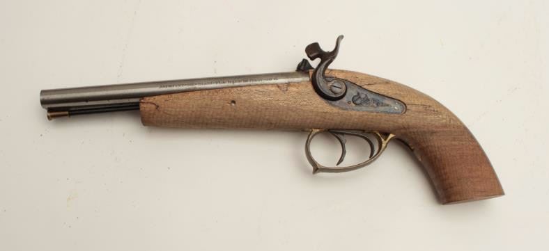Lot 653 Armsport SxS blackpowder percussion pistol, .44 caliber, double triggers, wood stock, S/N 05939, p