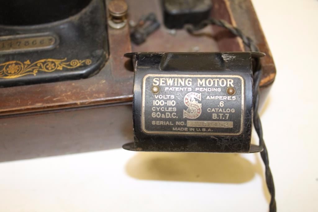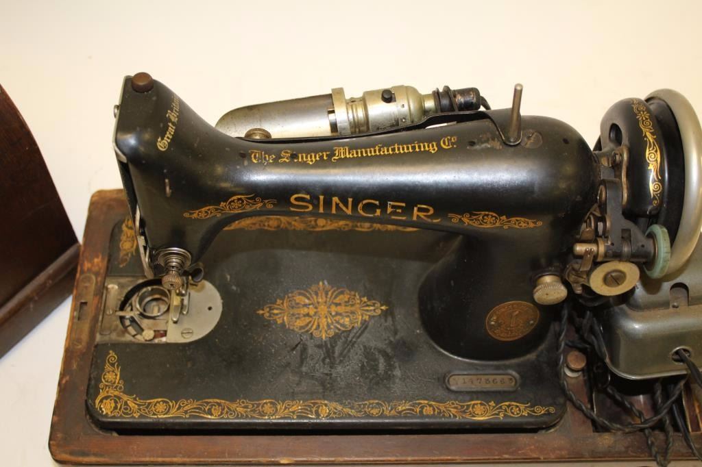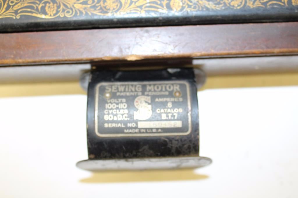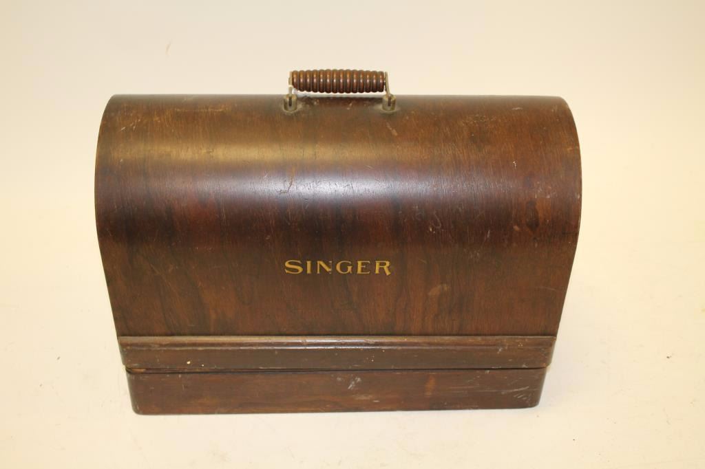 Lot 662 Singer brand table top sewing machine, ca. 1930’s; with case; missing parts. Est.: $50-$100.