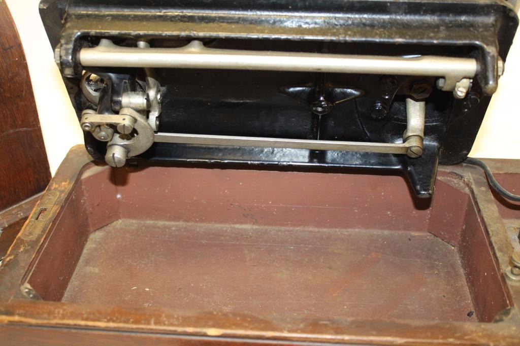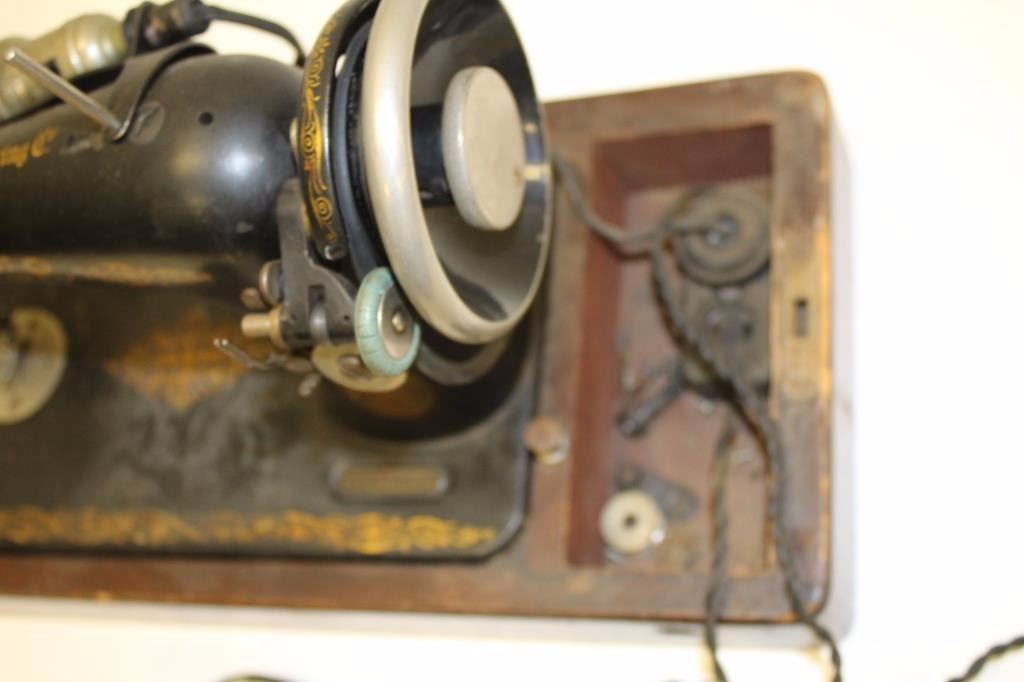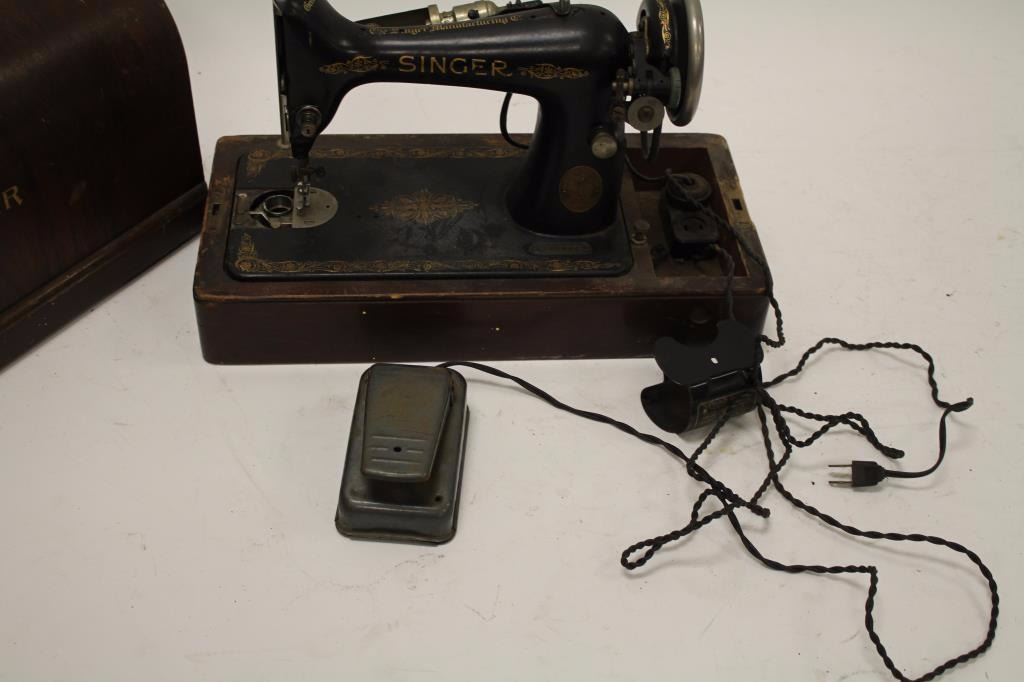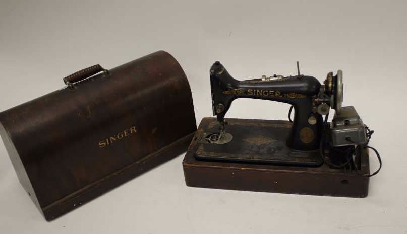 Singer brand table top sewing machine, ca. 1930’s; with case; missing parts. Est.: $50-$100.