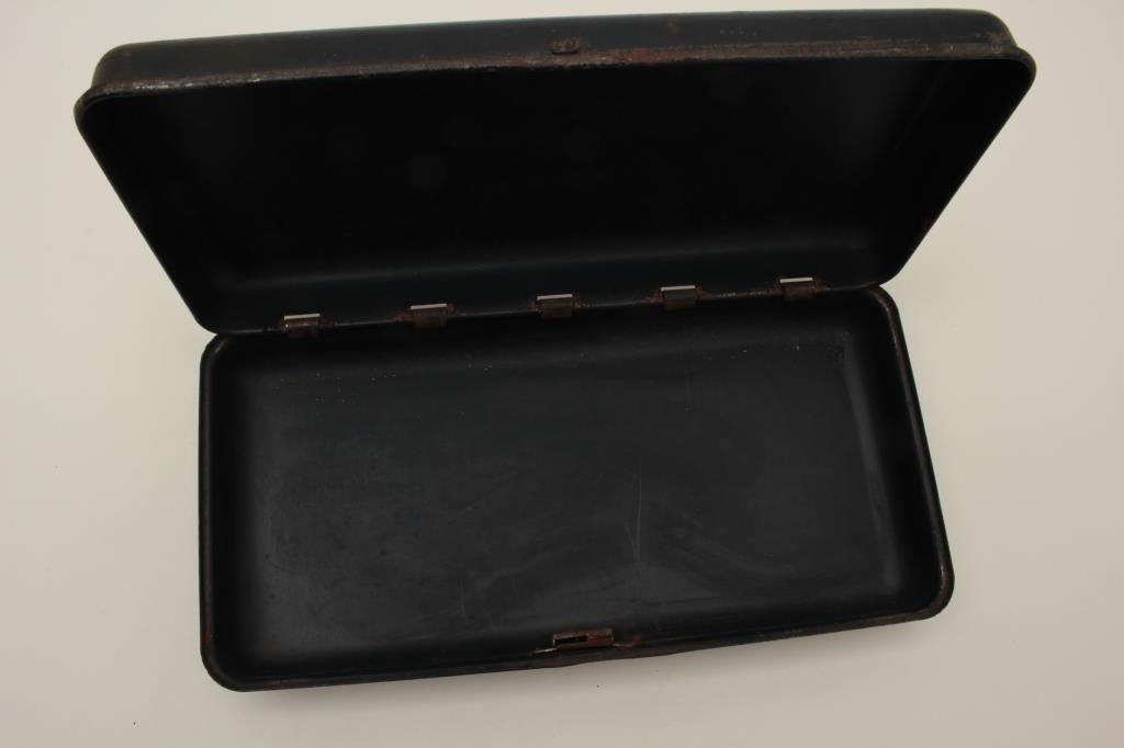 Lot 669 WW I metal Bond box, approximately 11” x 6” x3” and marked “LIBERTY BOND BOX/WEAR ADLER COLLEGIAN