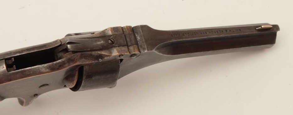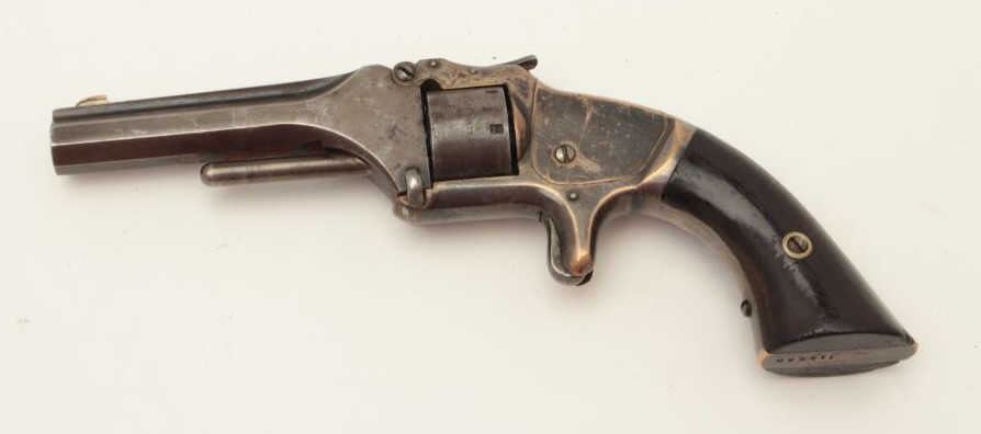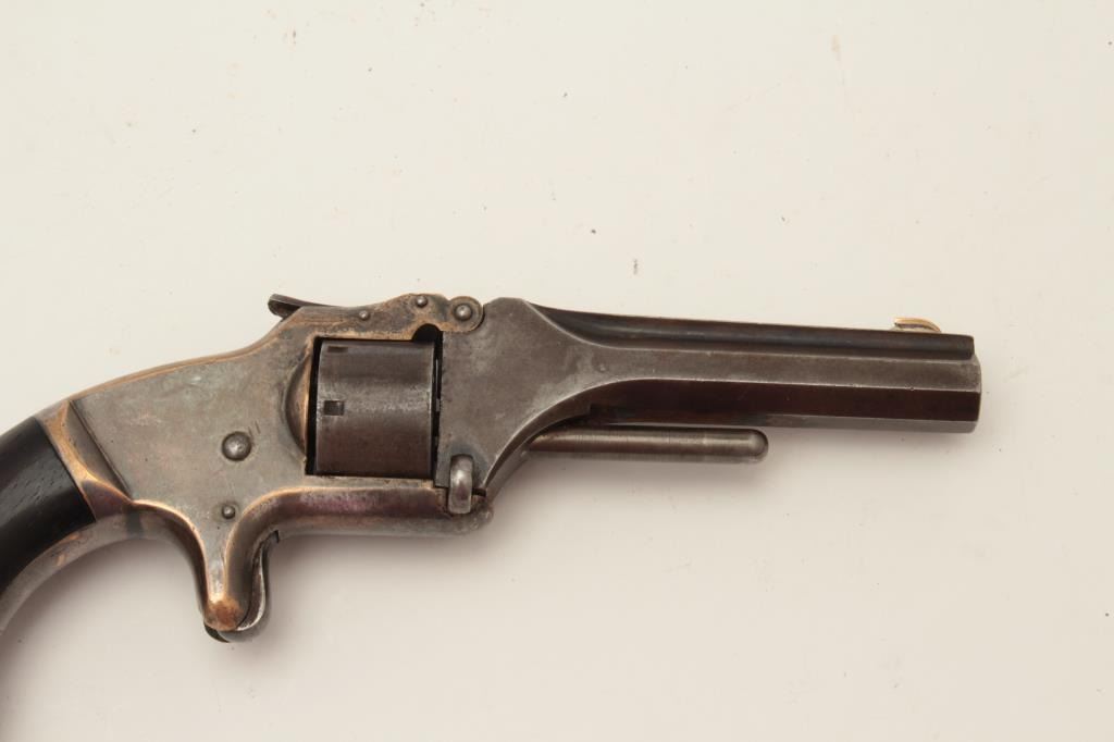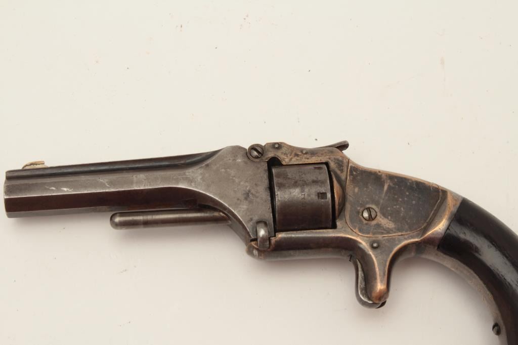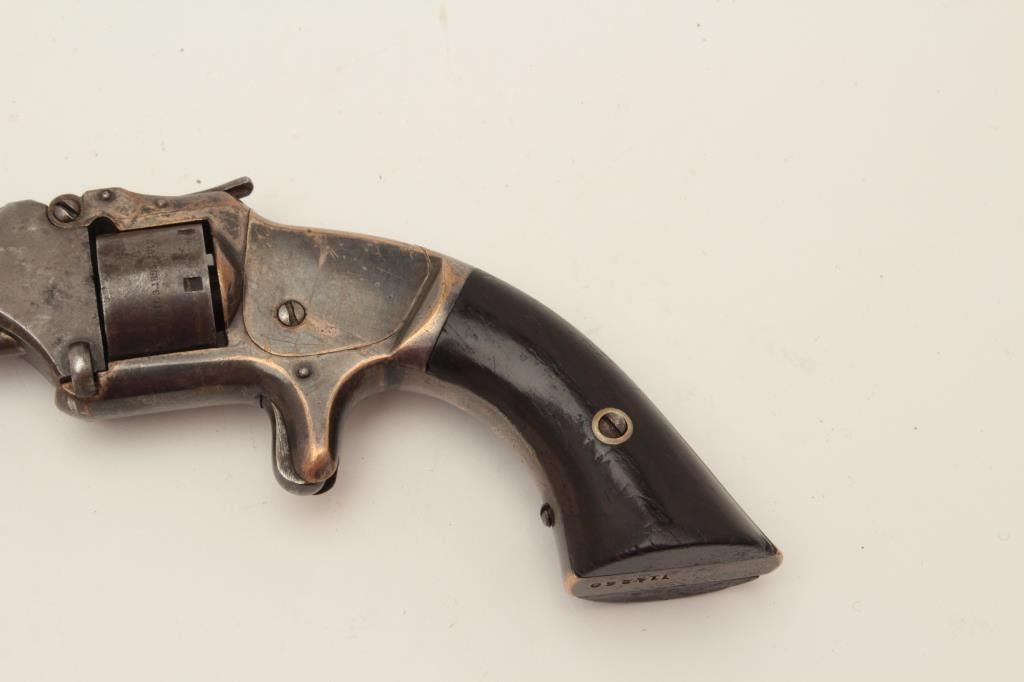 Lot 675 Smith & Wesson Model 1 Second Issue spur trigger revolver, .22 caliber, S/N 114260, rosewood grips