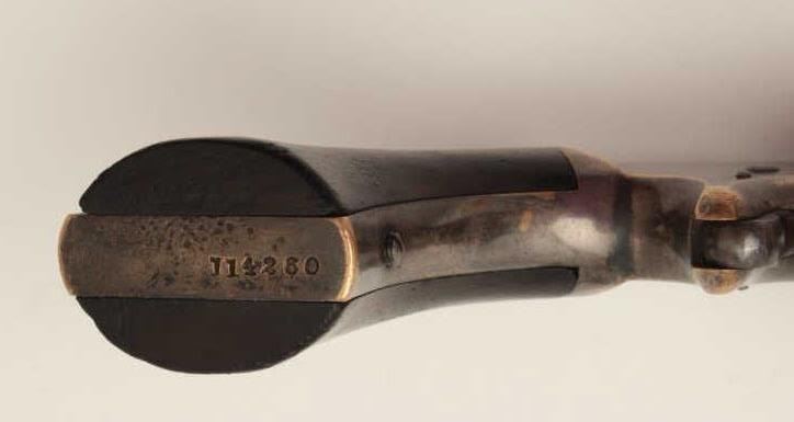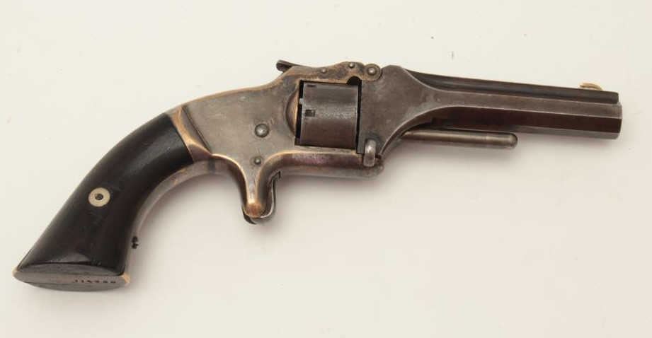 Smith & Wesson Model 1 Second Issue spur trigger revolver, .22 caliber, S/N 114260, rosewood grips, missing hammer; parts gun. (Antique). Est.: $50-$100.