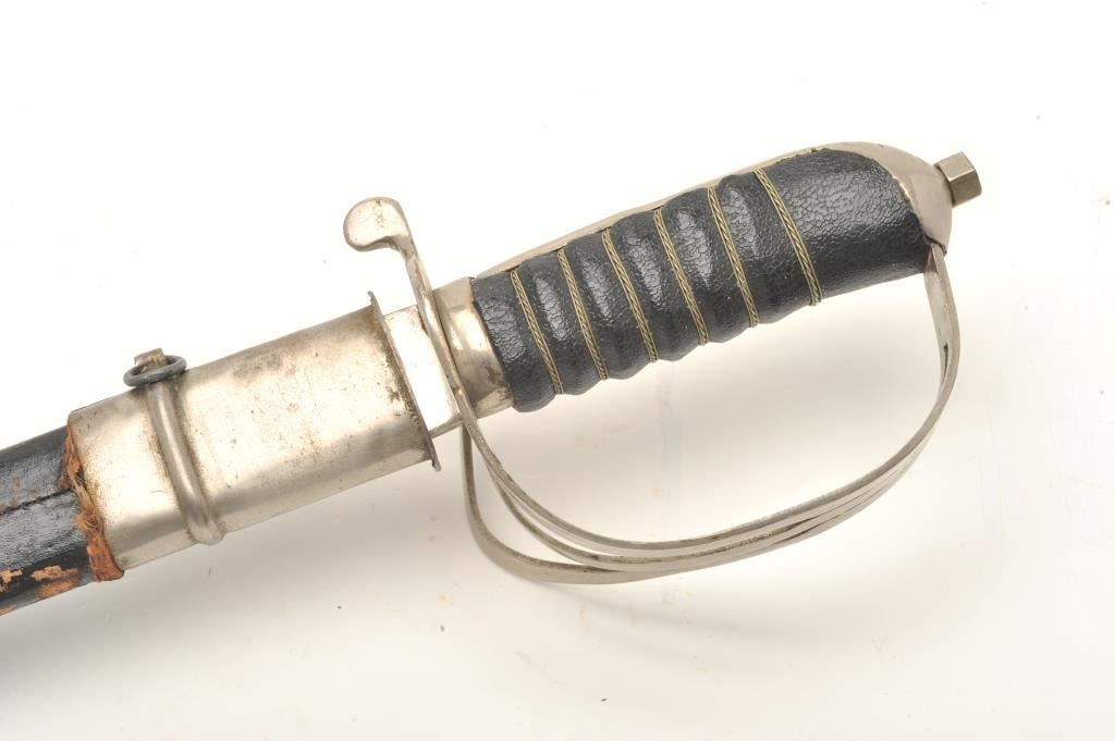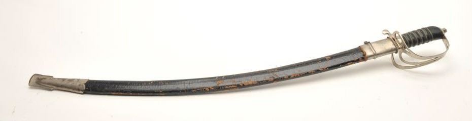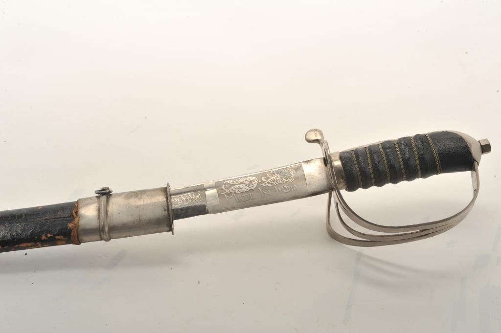 Indian sword and leather scabbard with metal throat and drag, approximately 38” overall. Est.: $25-$50.