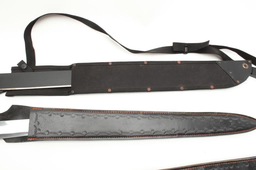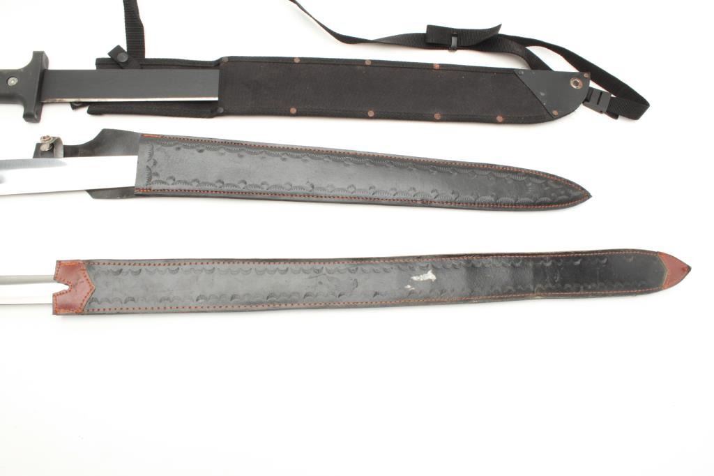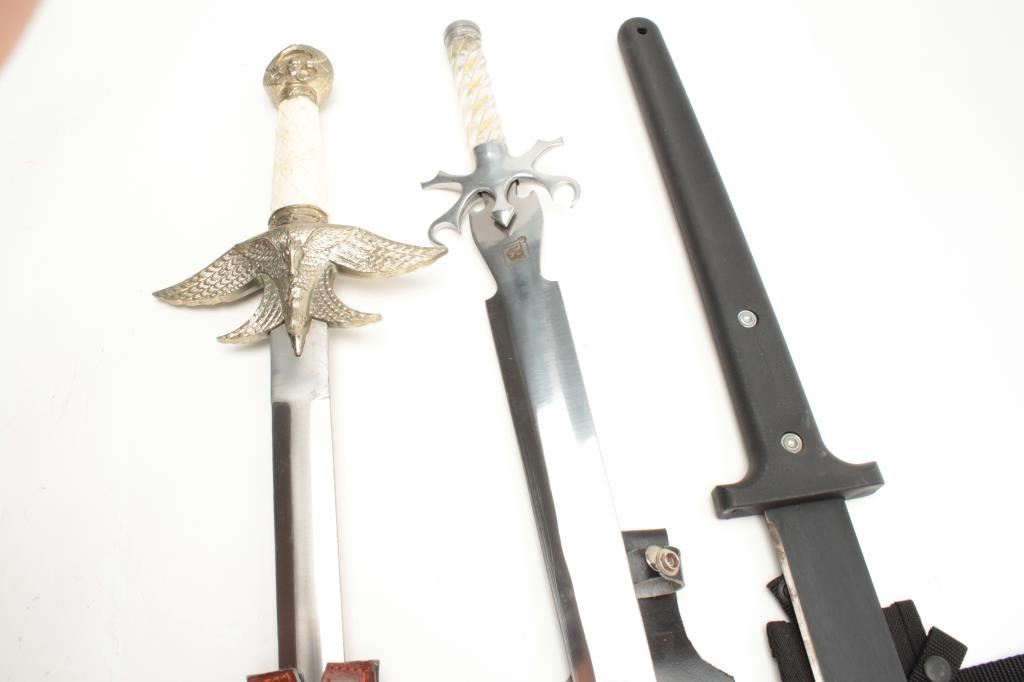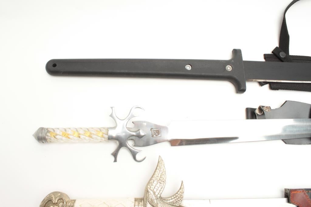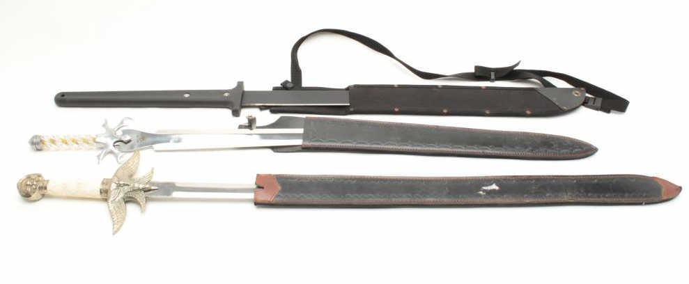 Lot of 3 large modern fantasy swords with scabbards. Est.: $100-$200.