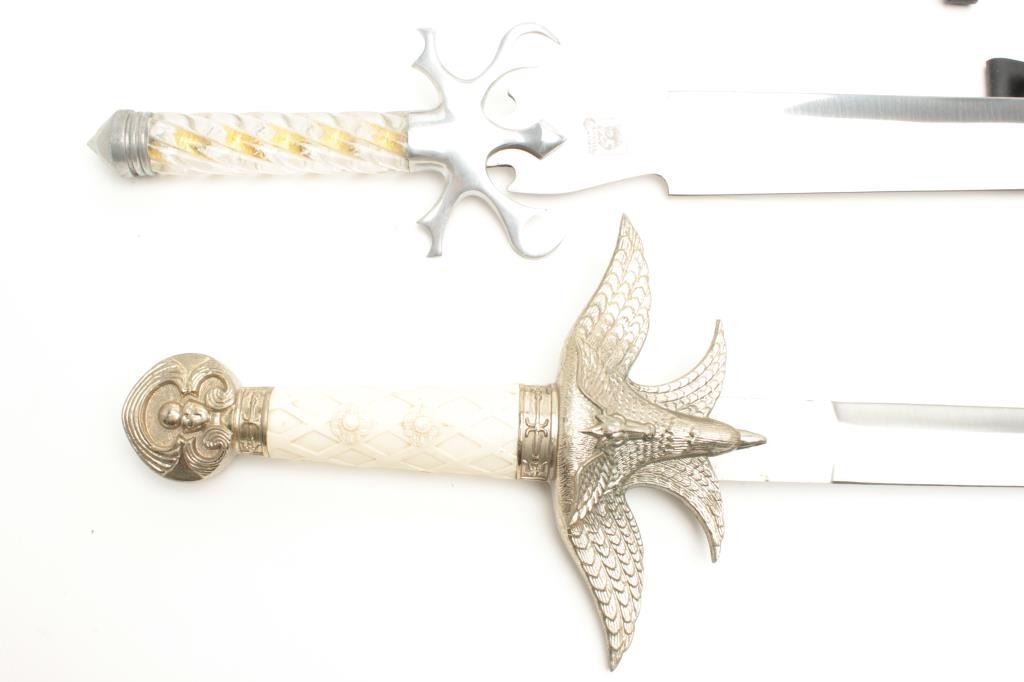 Lot 683 Lot of 3 large modern fantasy swords with scabbards. Est.: $100-$200.