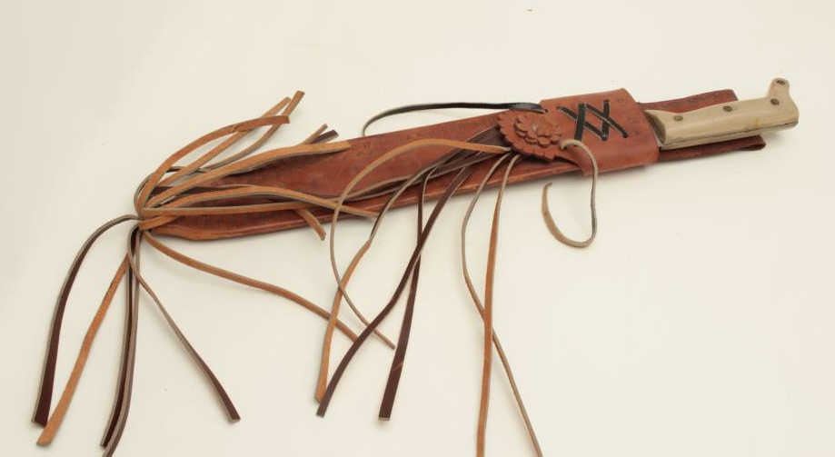 Lot 690 Columbian machete with bone grip and leather sheath; overall good condition. Est.: $20-$40