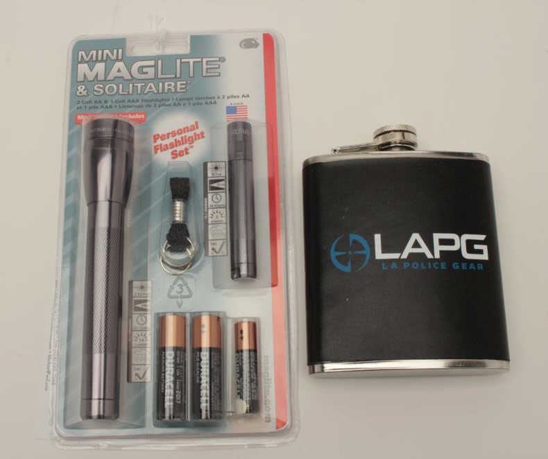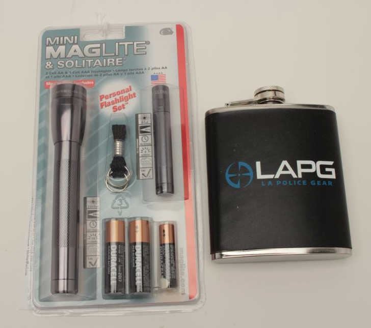 LAPG flask and mini-mag flashlight set; both like new. Est.: $25-$50.
