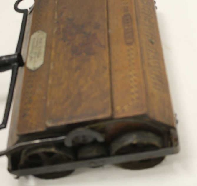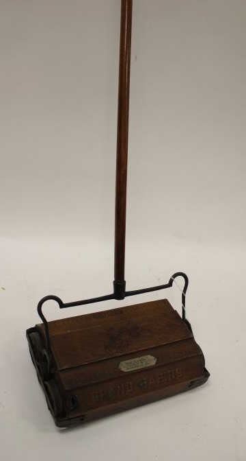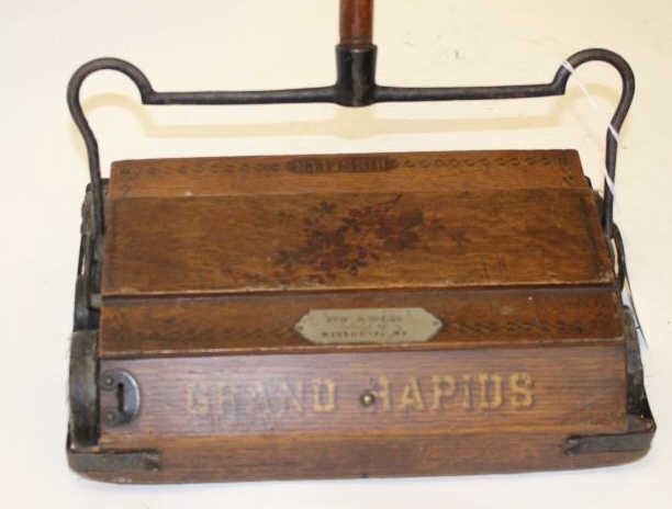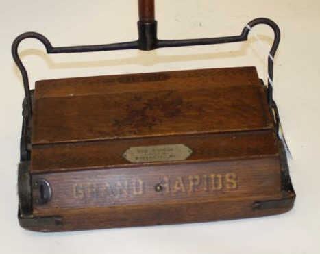 Lot 698 Antique wood and iron mounted floor sweeper marked “BISSELL’S/GRAND RAPIDS” with metal plate “WEBB