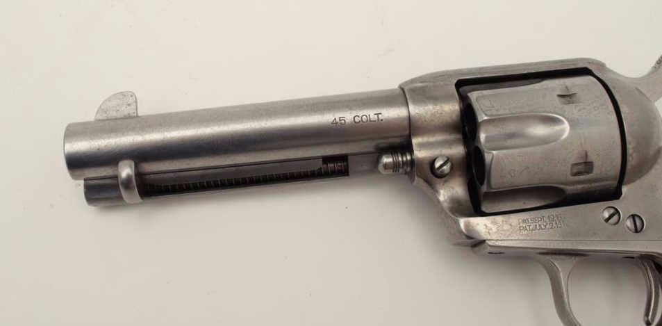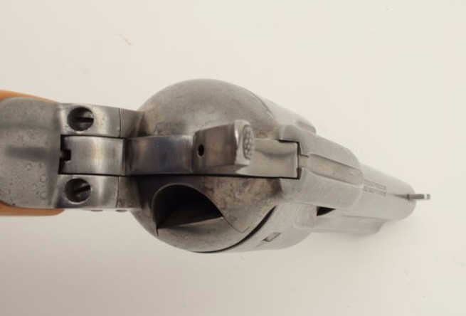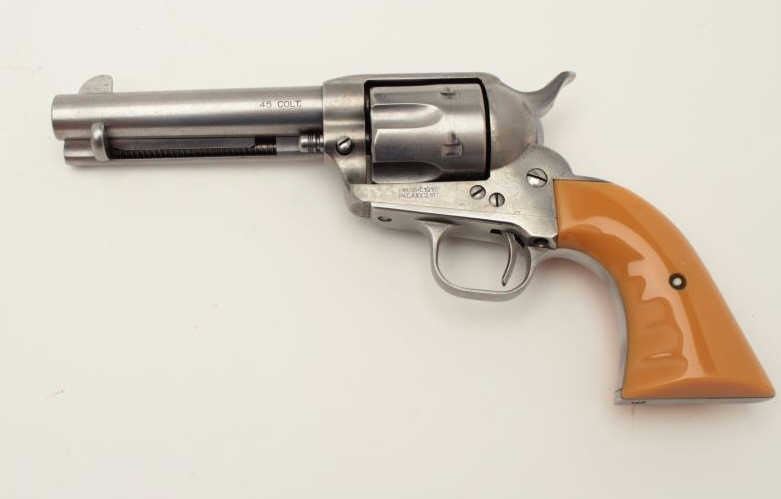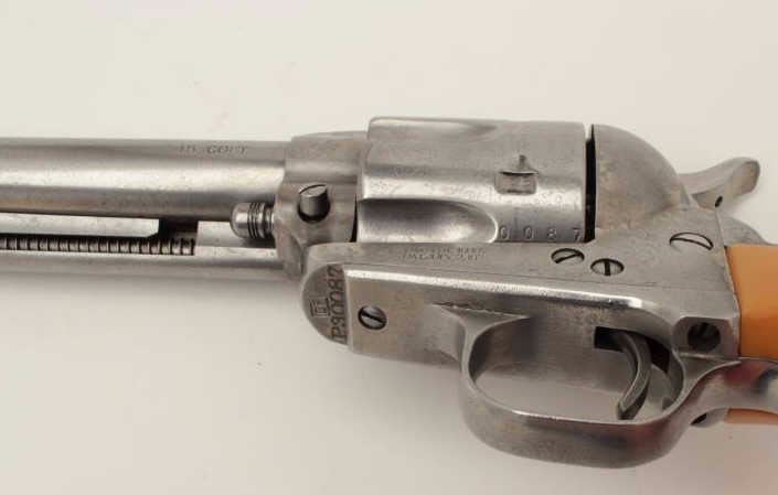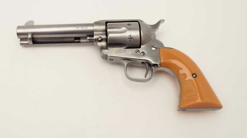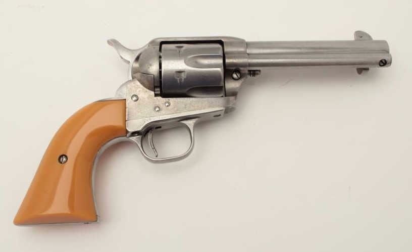 Cimarron SAA revolver, .45 caliber, 4.75” barrel, composite grips, S/N P30087, in overall good to very good condition with a light grey patina to metal surfaces, crisp action, very good + bore, very good grips and good markings. (Modern/PPT). Est.: $300-$600.