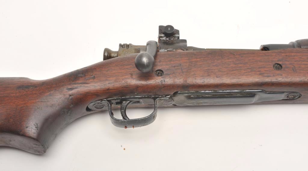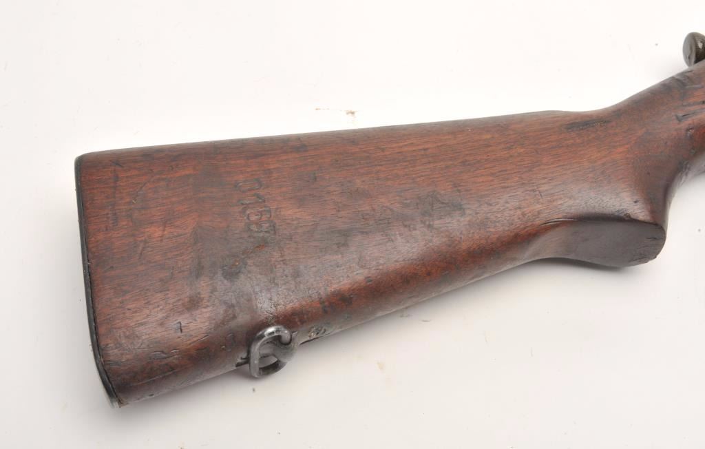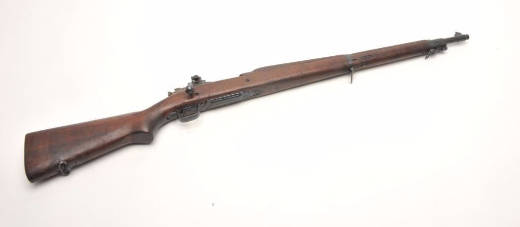 Smith-Corona U.S. Model 1903 A3 bolt action rifle, .30 caliber, serial #4870167. The rifle is in good overall condition with a 24” barrel with a blade front and military aperture style rear sights. The barrel andreceiver retain a significant amount of their military finish with moderate wear. The Smith-Corona marked barrel is dated 8-43 with the flaming bomb emblem. The receiver retains a significant amount of old packinggrease. The smooth wood stock shows heavy use with a serial number matching the action. The stock includes sling swivels and ends with a checkered steel butt plate with trap. The bore has significant old packing greasebut should clean; the action functions and markings are sharp. The lot includes the CMP certificate of authenticity provided at purchase. (C+R) Est.: $300-$600