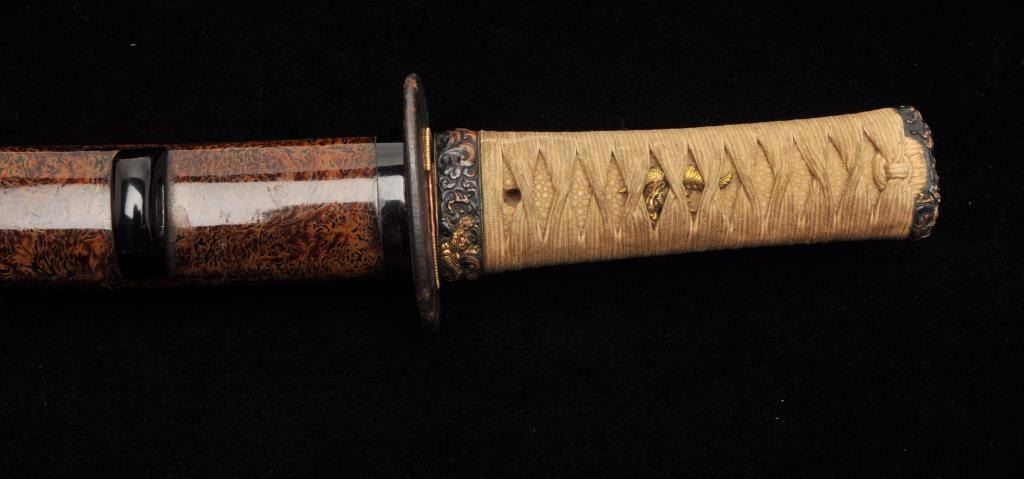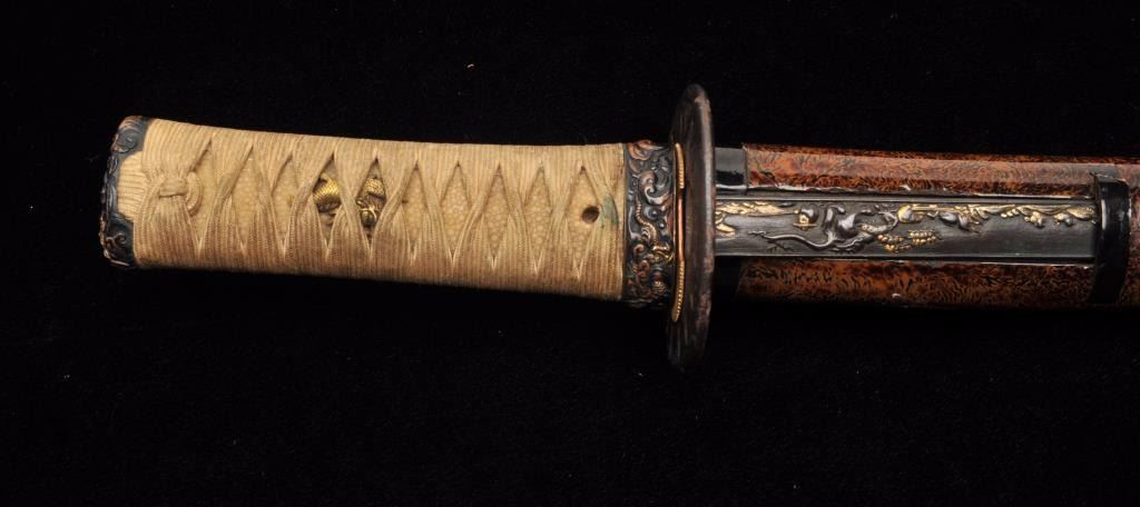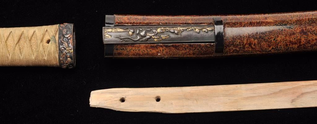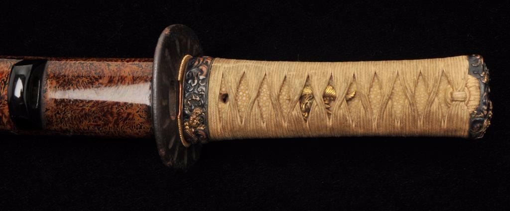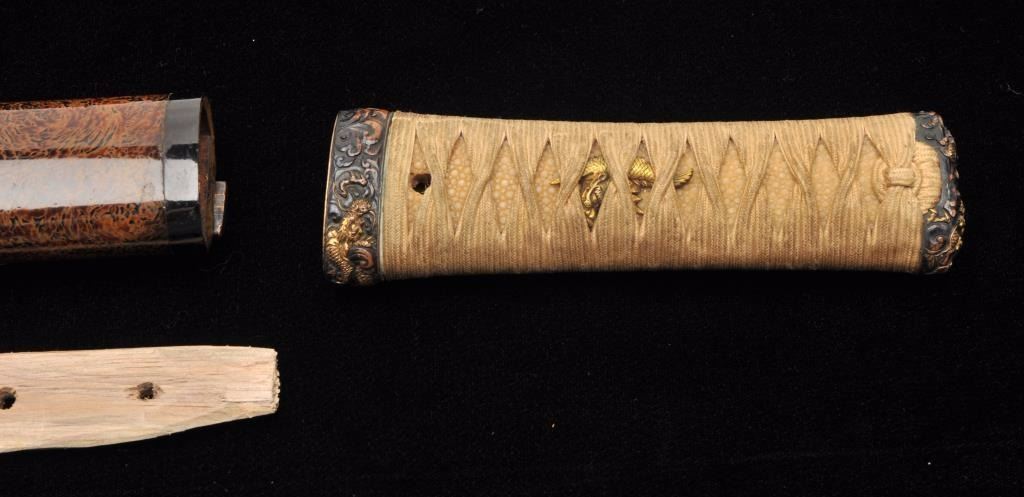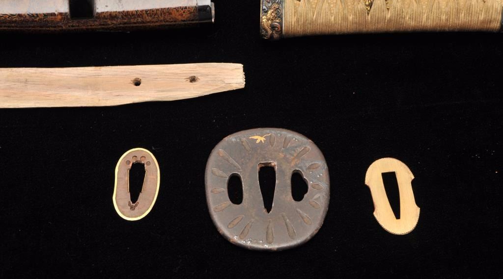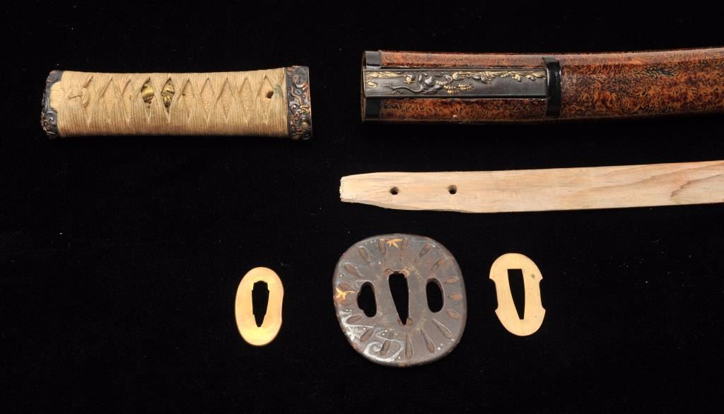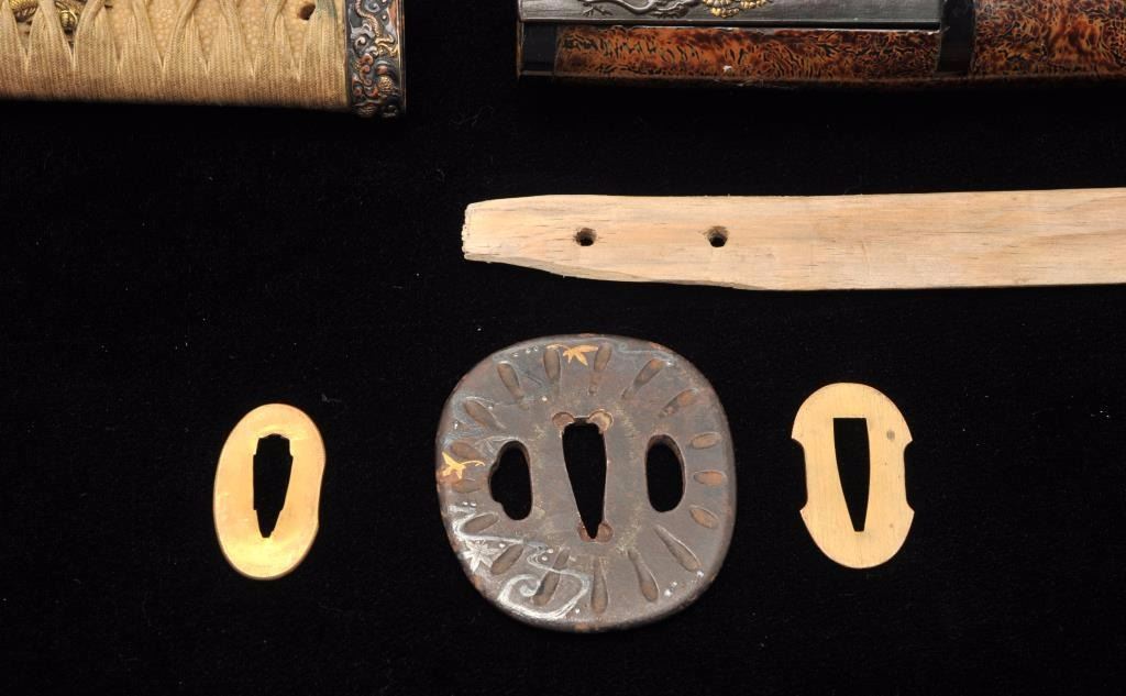Lot 724 Mounts only for Japanese wakasashi or medium size sword. A fine full mounting including kozuka kni