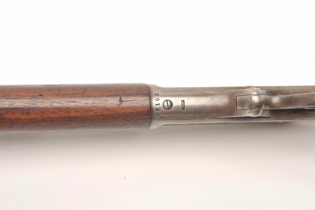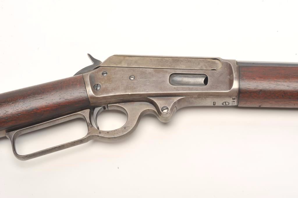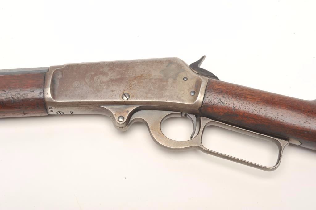 Marlin Model 93 lever action rifle, .30-30 caliber, 26” octagon barrel, blued and case hardened finish, wood stocks, S/N D6108, in overall very good condition displaying the majority of its original blue on the barreland loading tube with traces of original case colors on the receiver; good bore, crisp action, sharp markings and overall good to very good wood with some scattered old mars and scratches from storage. (C&R).Est.: $350-$700.
