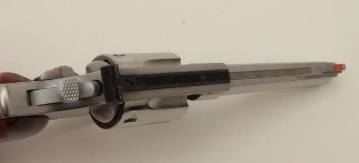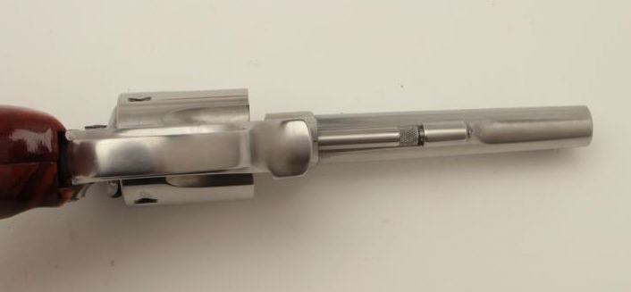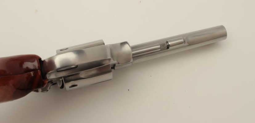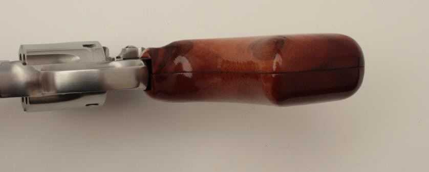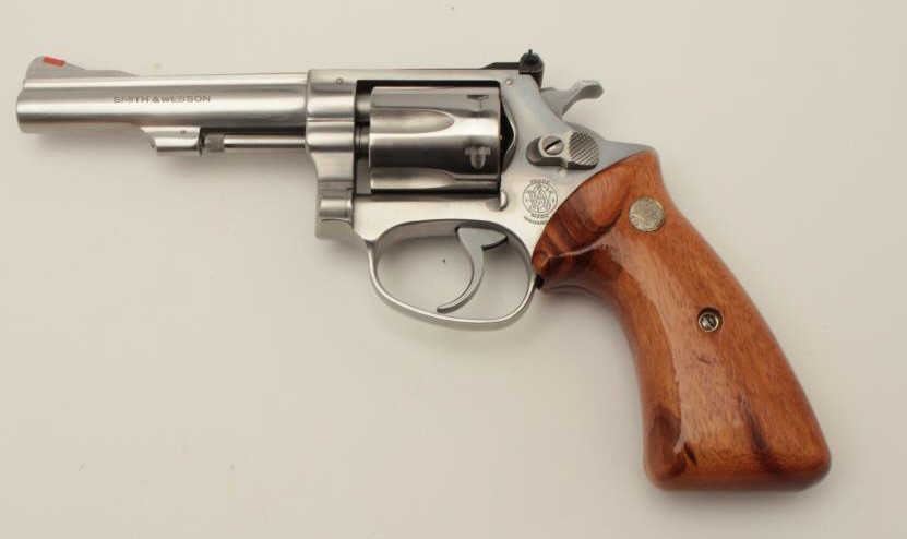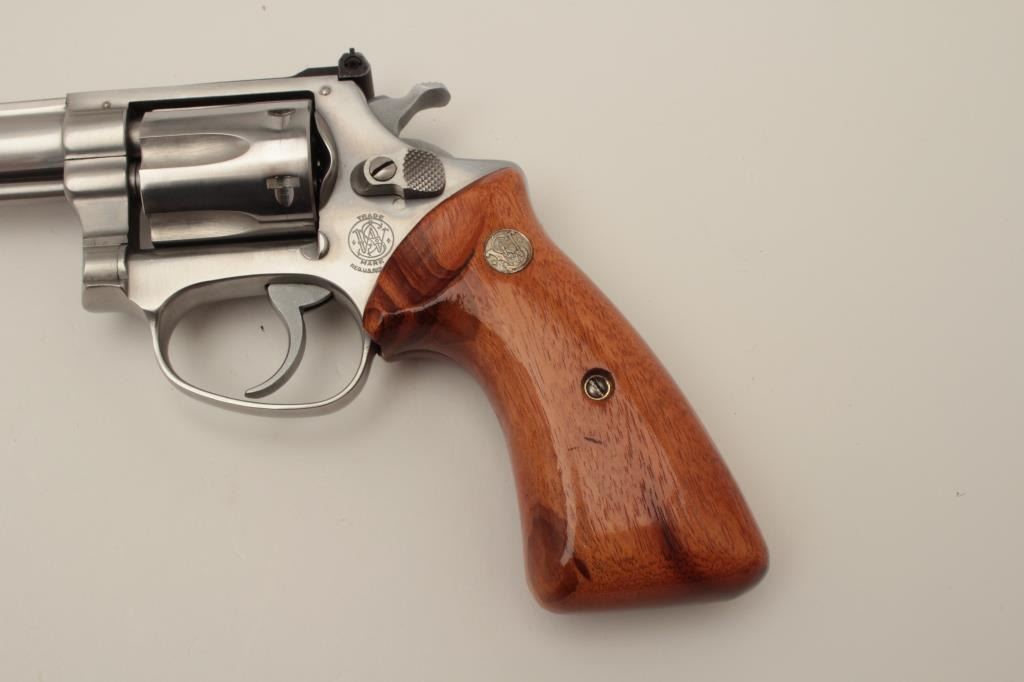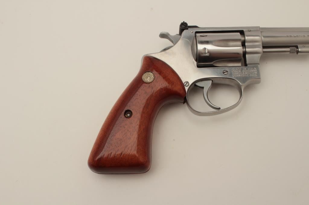 Lot 740 Smith & Wesson Model 63 DA revolver, .22LR caliber, 4” barrel, stainless, smooth wood medallion gr