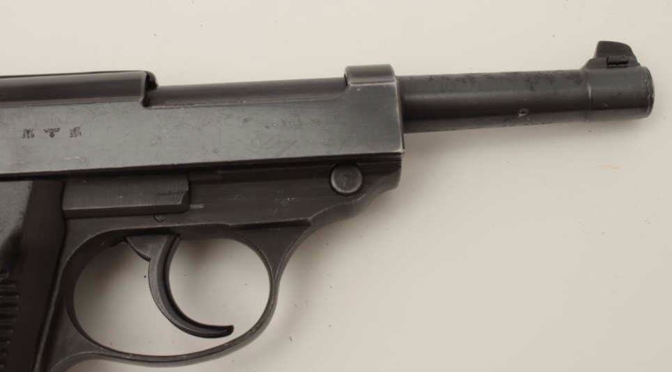 Lot 752 Walther P-38 DA semi-automatic pistol, 9mm caliber, 5” barrel, nazi proofed, import-marked, blued