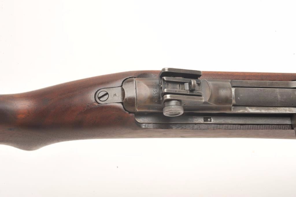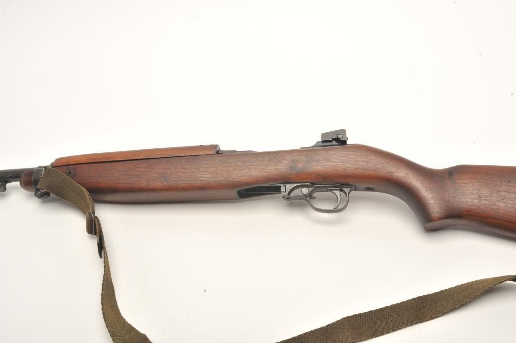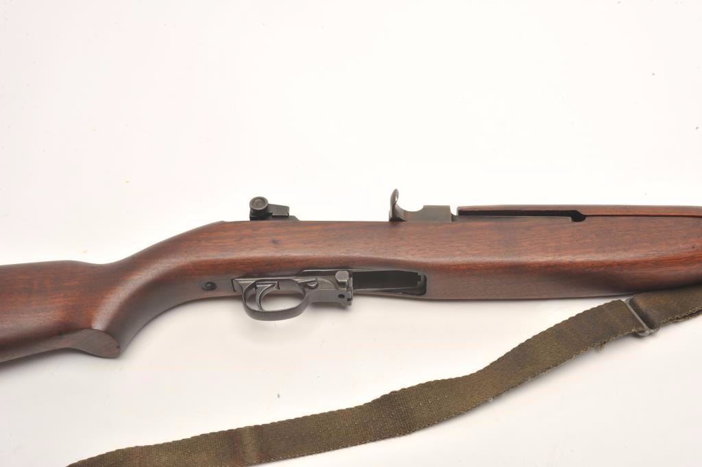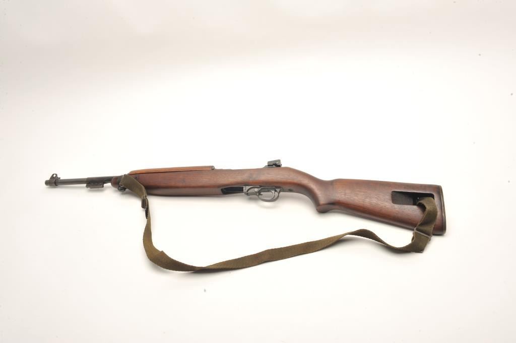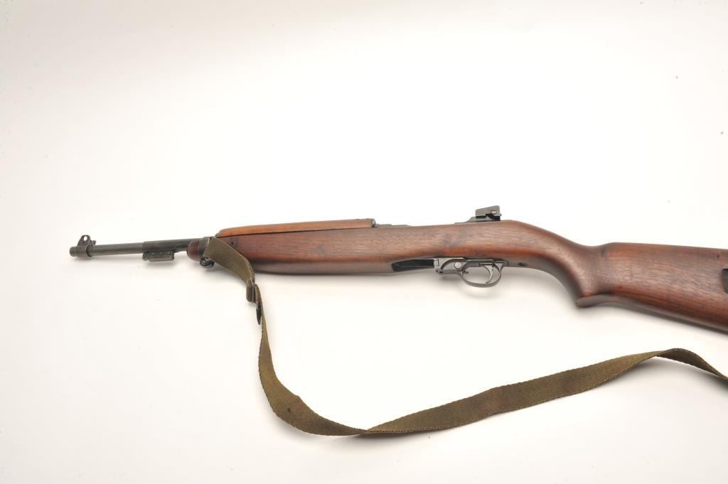 U.S. M1 semi-auto carbine by Underwood, .30 caliber., 18” Underwood barrel dated 2-44 with the flaming bomb, military finish, wood stock , oiler with sling, no magazine, later sight, flat bolt, bayonet lug, serial#2203552. The smooth wood stock is in very good overall condition showing small compressions and storage marks with a checkered steel butt plate and a faint cross cannons cartouche on the butt stock. Thecarbine itself is in good overall condition showing considerable military finish with an import marked barrel. The bore is good, the action crisp and markings are sharp on this desirable Underwood carbine. (C+R) Est.:$500-$1,000.