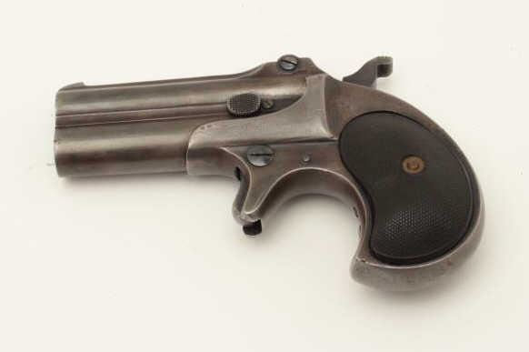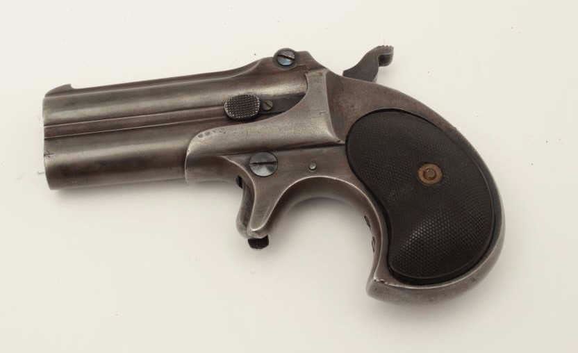 Lot 758 Remington O/U derringer, .41 caliber, 3” barrels, blued finish, checkered hard rubber grips, S/NL9
