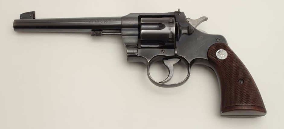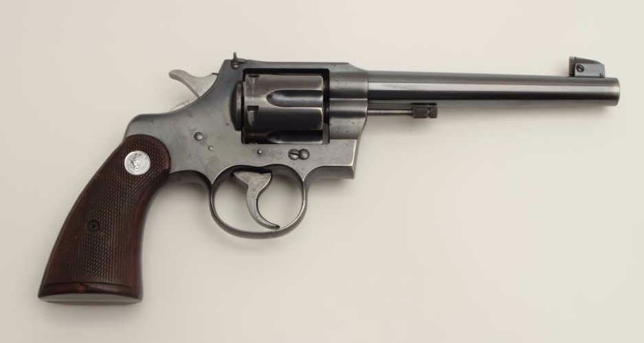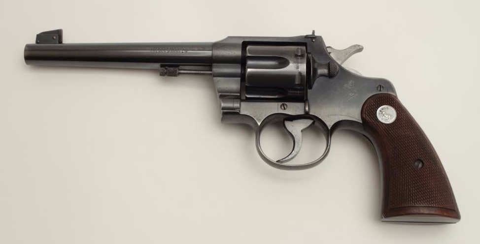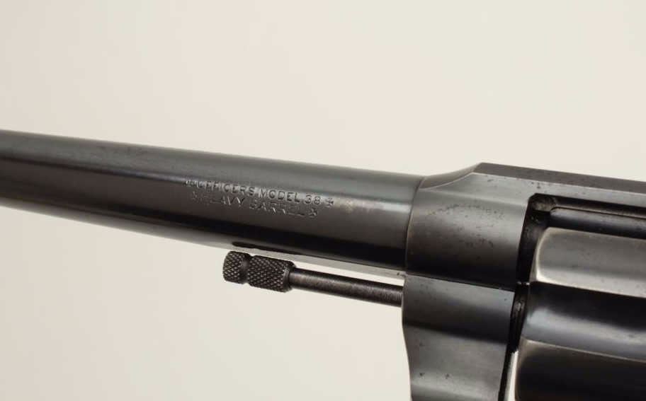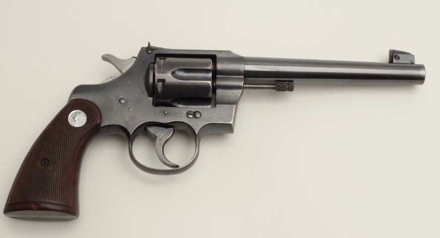 Lot 763 Colt Officer’s Model flat top target DA revolver, .38 caliber, 6” barrel, blued finish, checkered