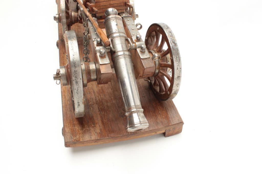 Lot 772 Minature Horse drawn artillery cannon with complete handmade carved wood horses, turned metal and