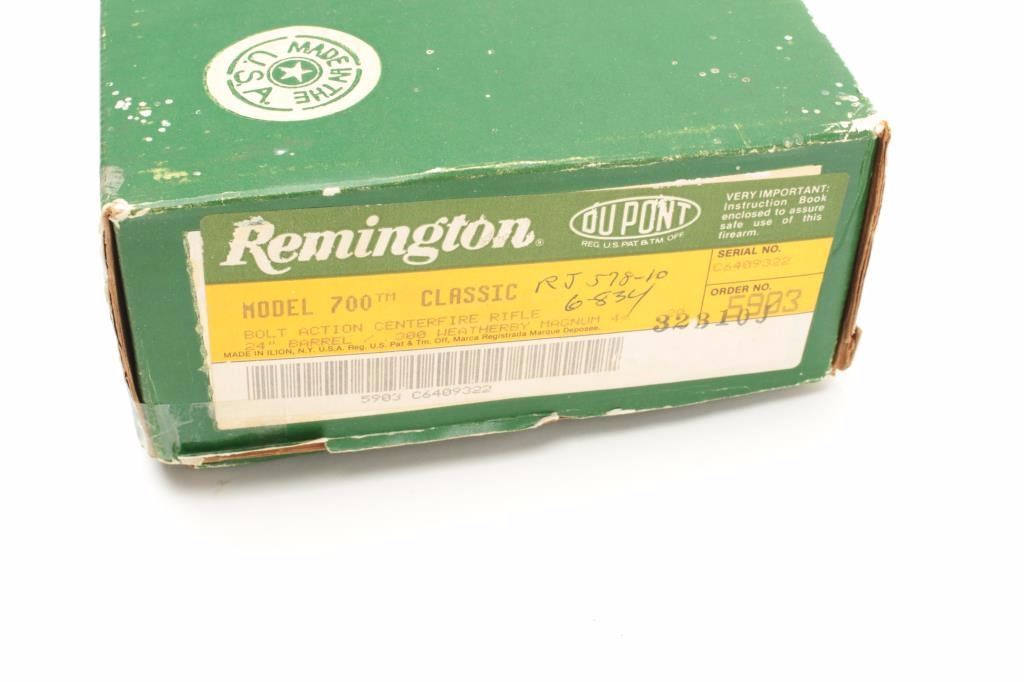 Remington Model 700 bolt action rifle, .300 Weatherby Mag. caliber, 24” round barrel, blued finish, checkered wood stock, S/N C6409322, in like new condition with factory box. (Modern). Est.: $700-$1,400.