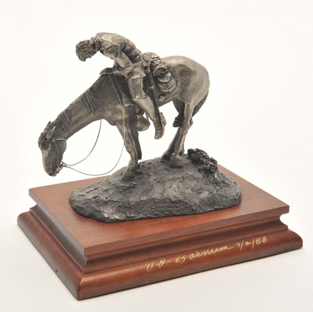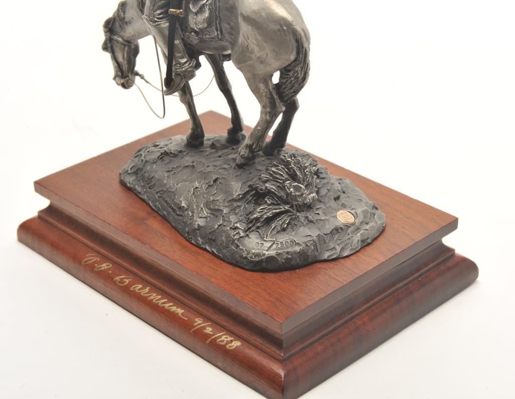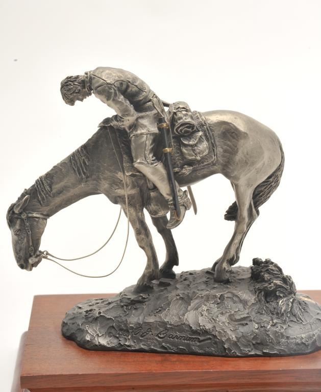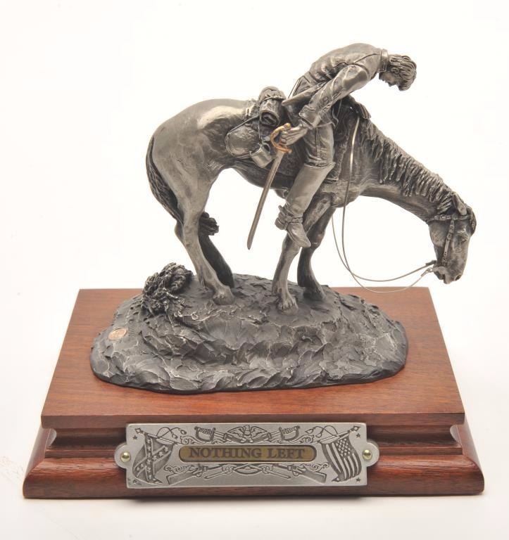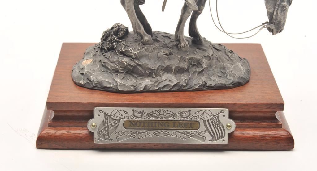 Pewter sculpture by Fran Barnum and issued by Chilmark Collectors Society entitled “Nothing Left”, #007/2500, approximately 5.5” in height including wood base with Certificate of Registration signed and datedOct. 17, 1988. Est.: $250-$500.