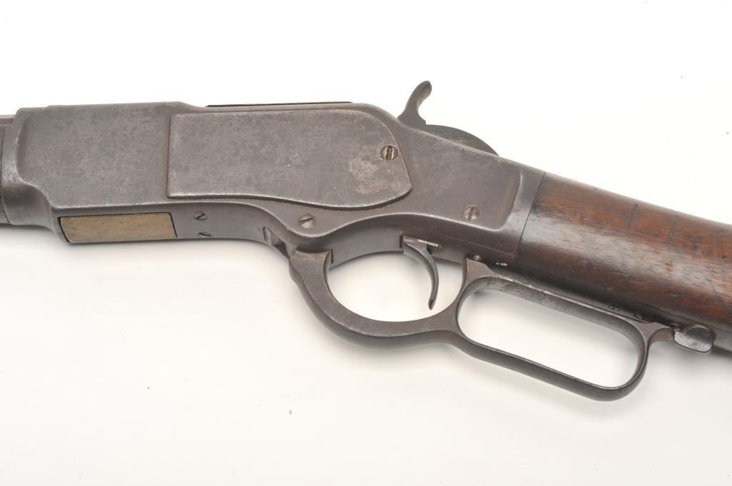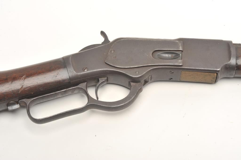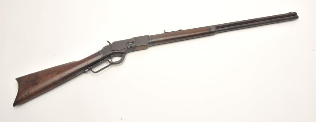 Lot 788 Winchester Model 1873 lever action rifle, .38 W.C.F. caliber, 26” octagon barrel, wood stocks, S/N