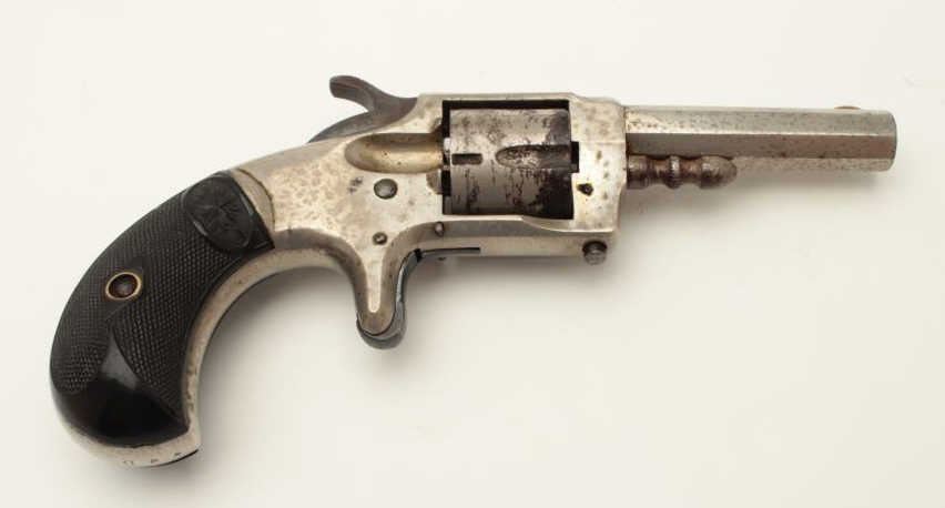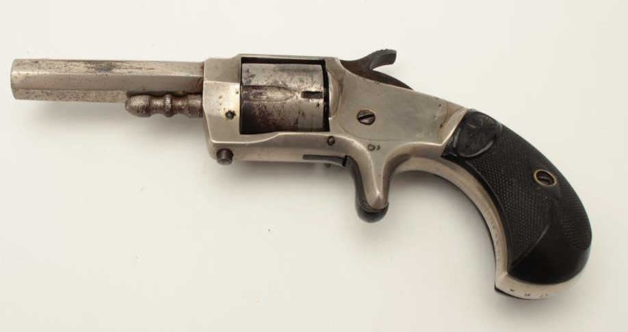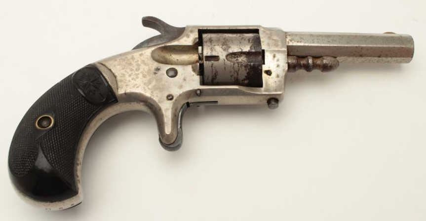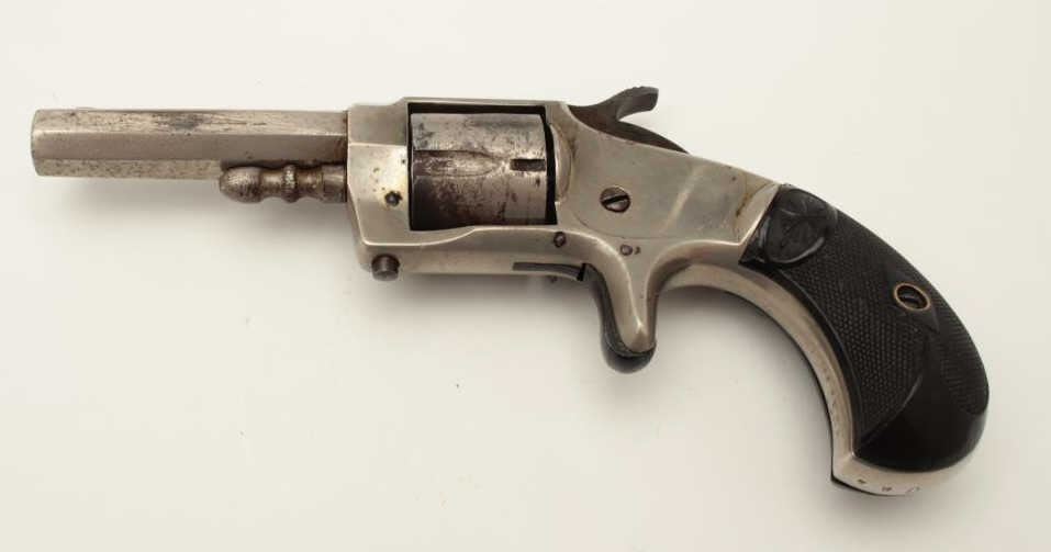 Lot 792 Whitneyville .30 caliber spur trigger revolver, 2.5” octagon barrel, nickel, hard rubber grips, no