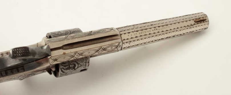 Lot 793 Whitneyville .22 caliber spur trigger revolver, 3.25” octagon barrel, non-fluted cylinder, fully e