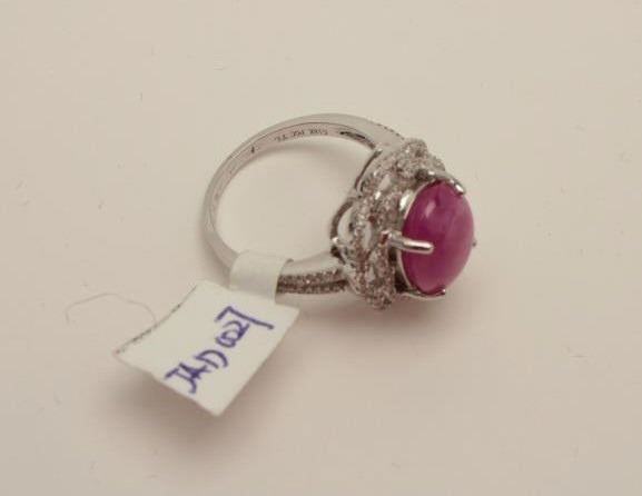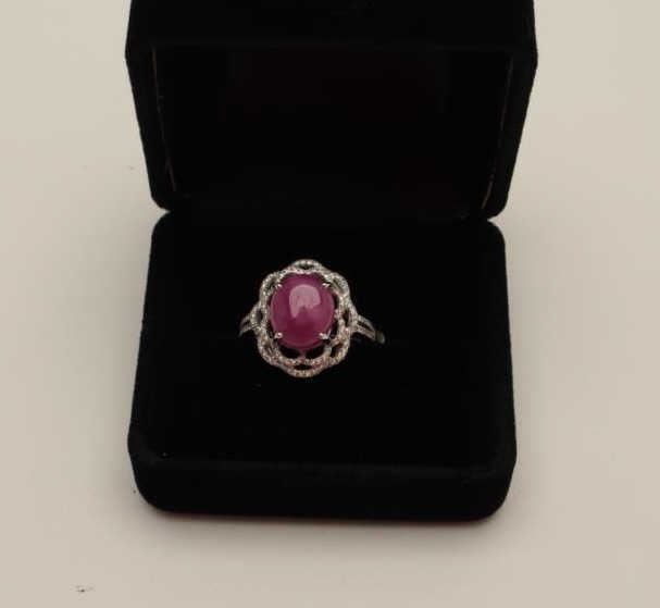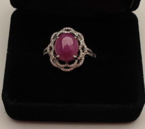 Lot 795 One exquisite 18k white gold ladies ring set with a 5ct Burmese ruby cabochon weighing approx 5ct
