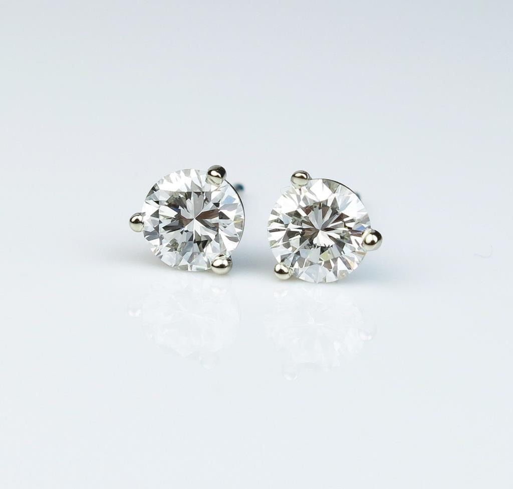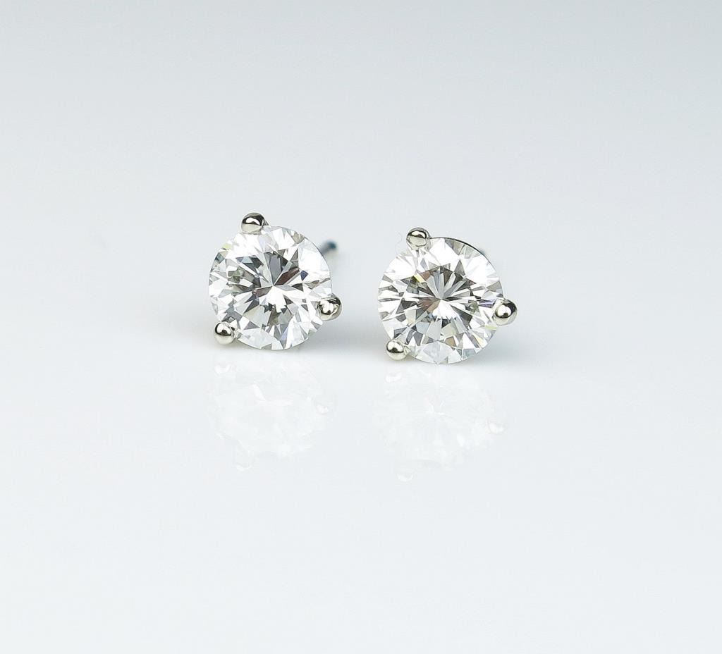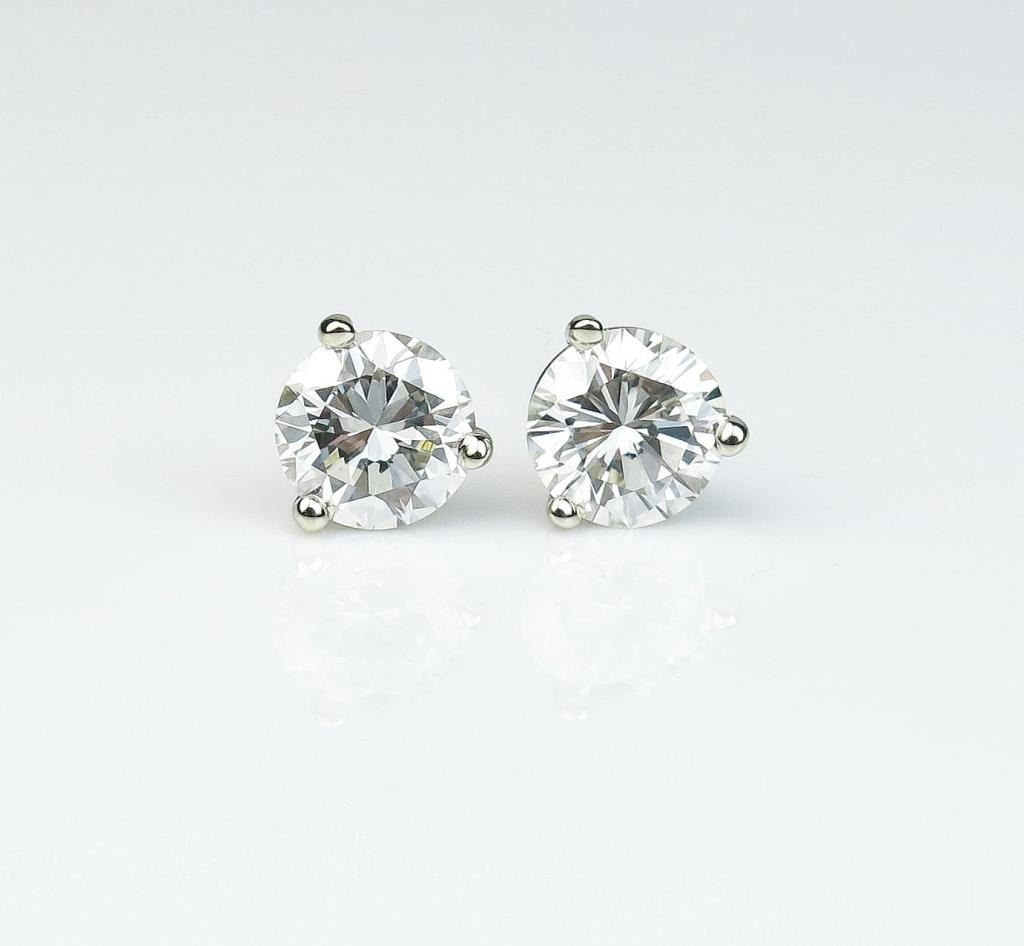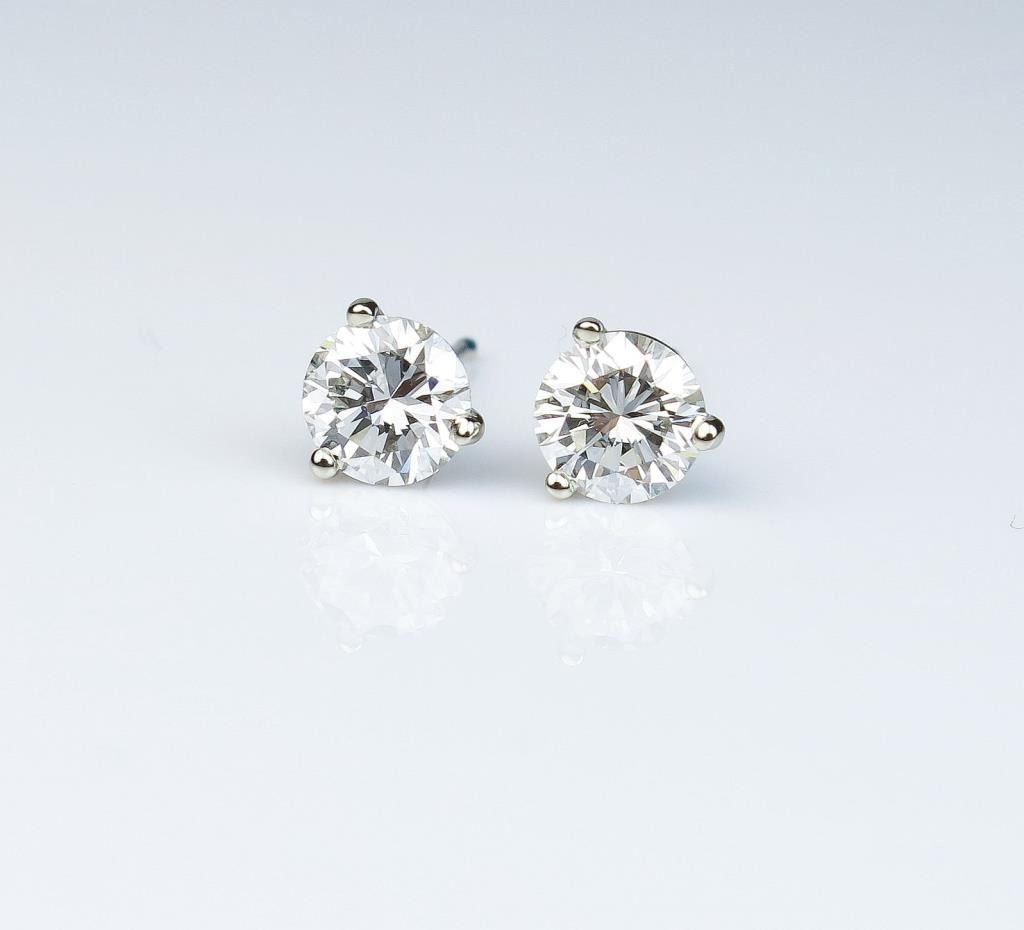 Extra fine quality ‘IDEAL’ cut diamond stud earrings weighing 1.00 carat of F-G colors and VVS/VS clarity set in 14 karat white gold Martini design settings. Retail $6,000- $7,000 Estimates $3,000-$4,000