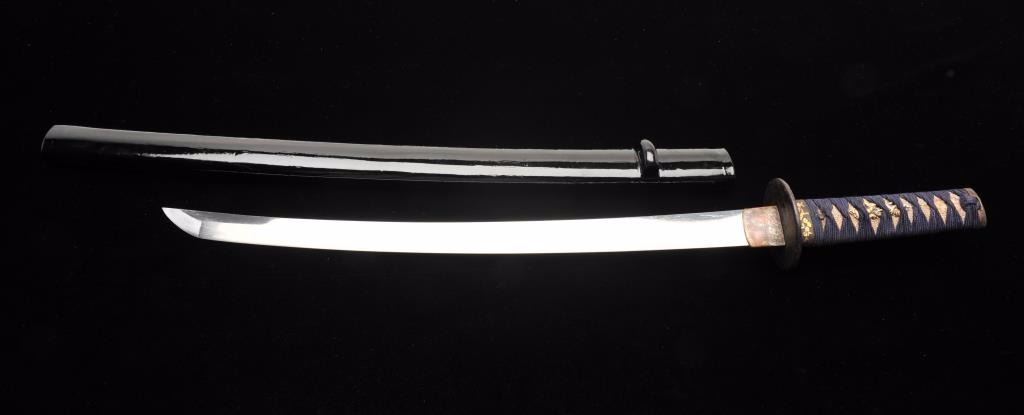 Lot 800 Koto period wakasashi (Medium size) unsigned in full mountings. The blade is 17” in length and sho