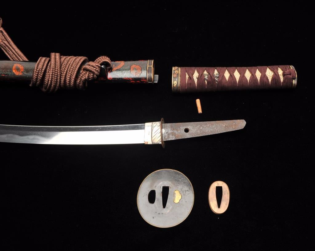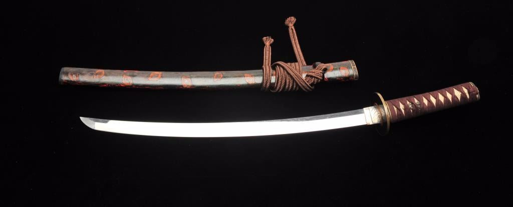 Lot 801 Koto period wakasashi (medium sword) with full and fancy traditional style mountings. The blade is