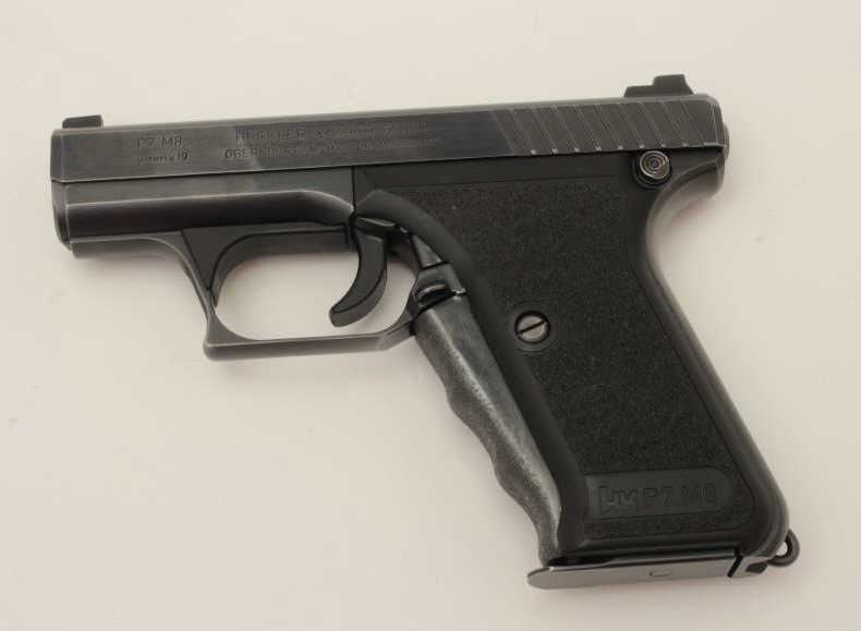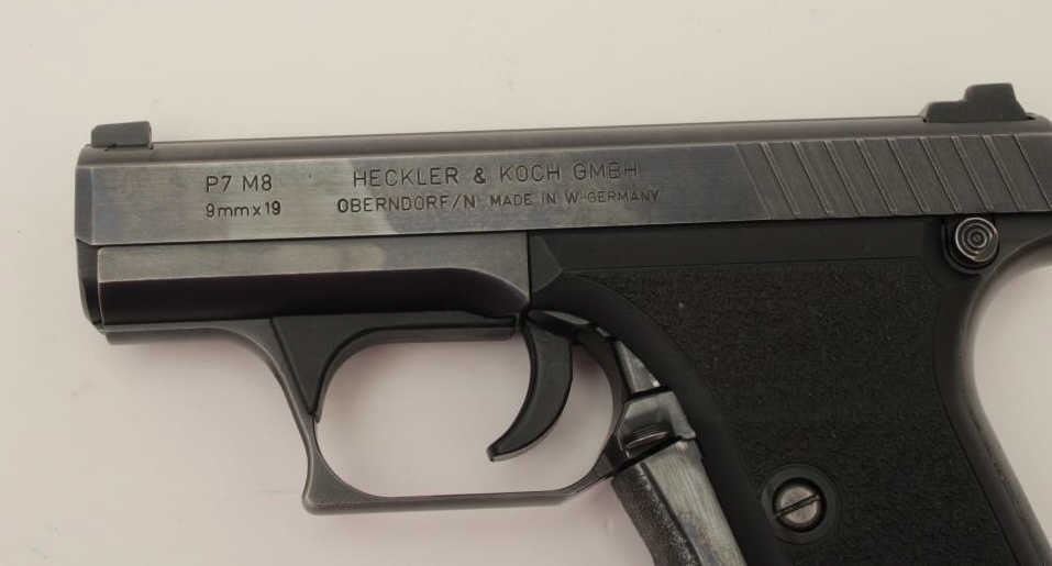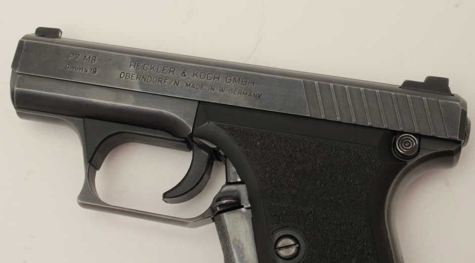 Lot 807 H&K Model P7 M8 squeeze cocker semi-automatic pistol, 9mm caliber, 4” barrel, blued finish, stippl