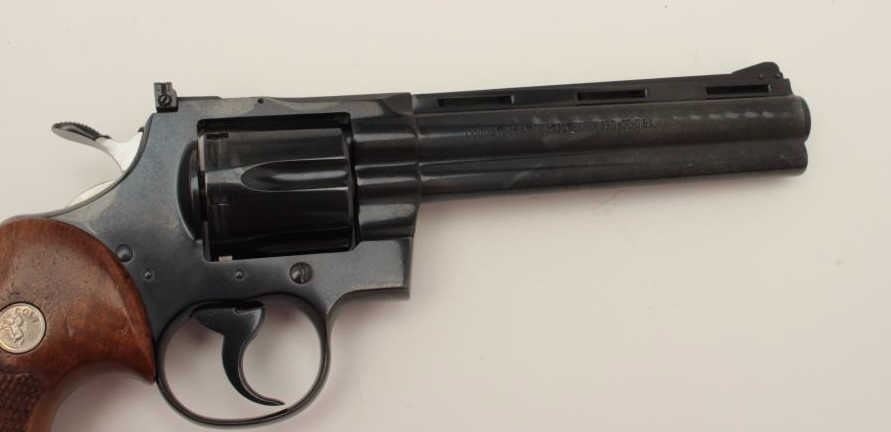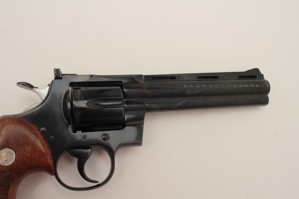 Lot 810 Desirable Colt Python Model DA revolver, .357 Magnum caliber, 6” ventilated rib barrel, blued fini
