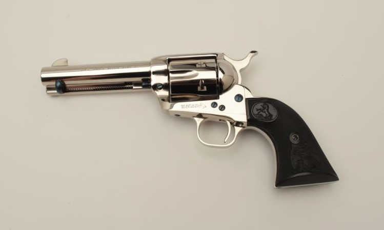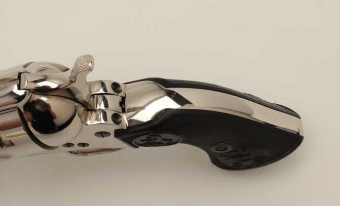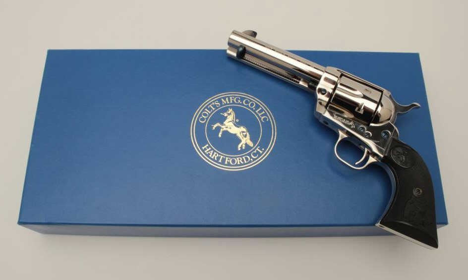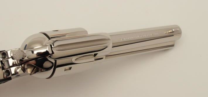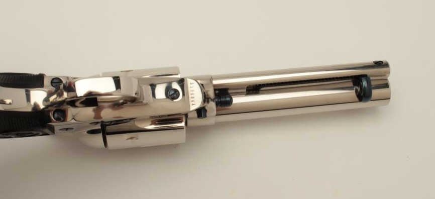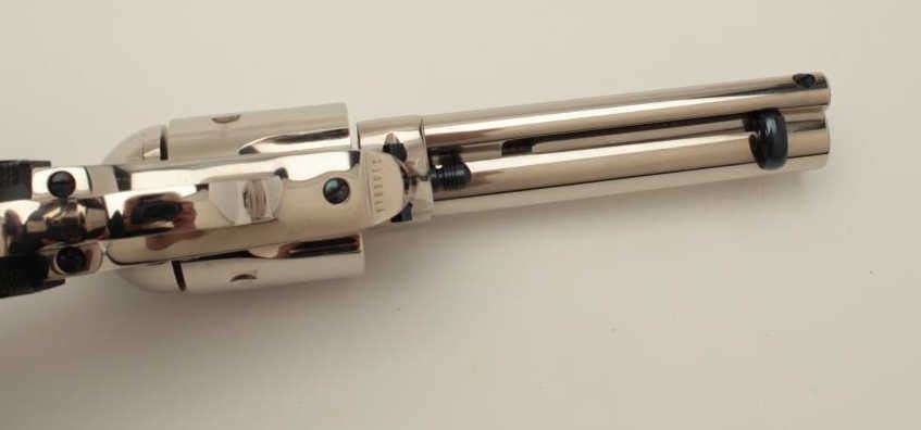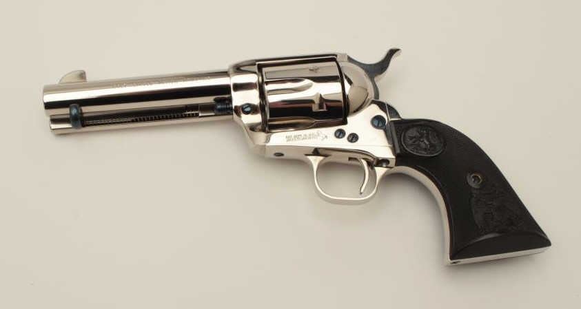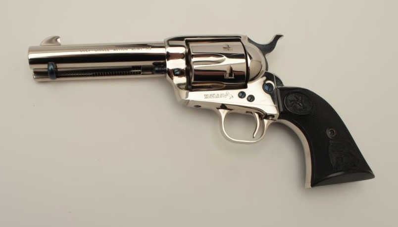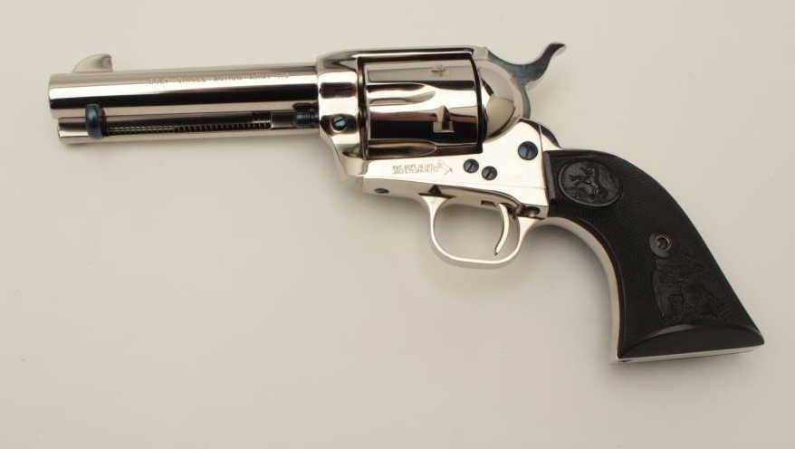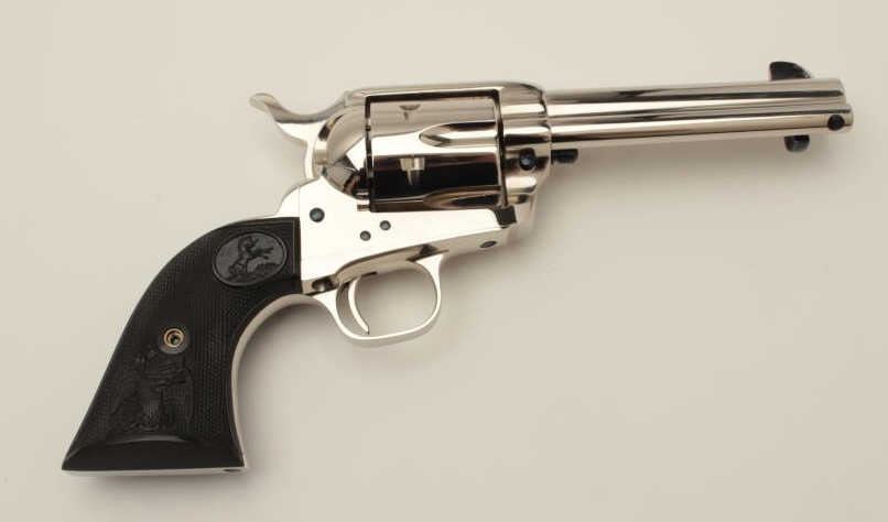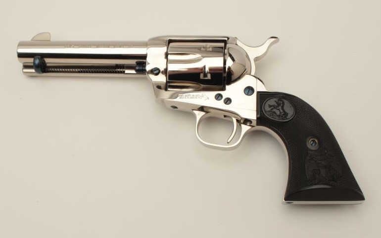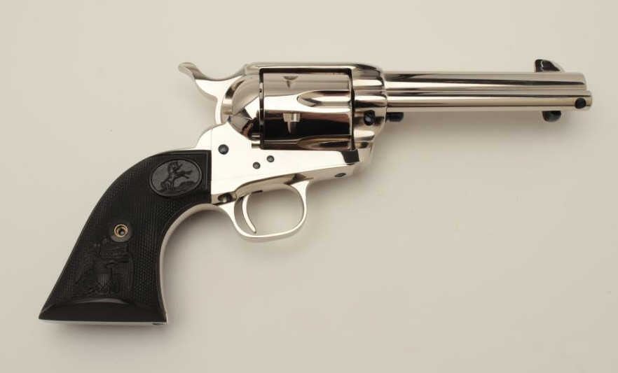 Lot 811 Colt 4th Generation SAA revolver, .45 caliber, 4.75” barrel, nickel finish, checkered black eagle
