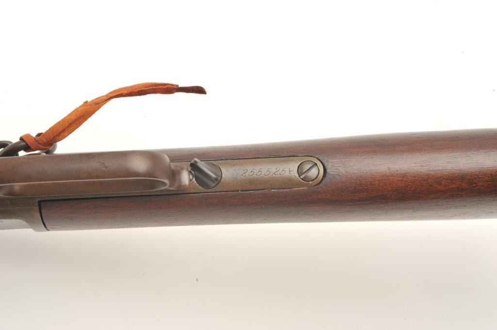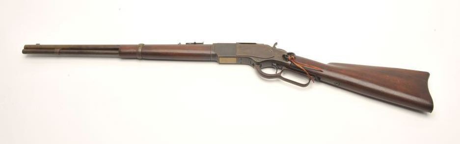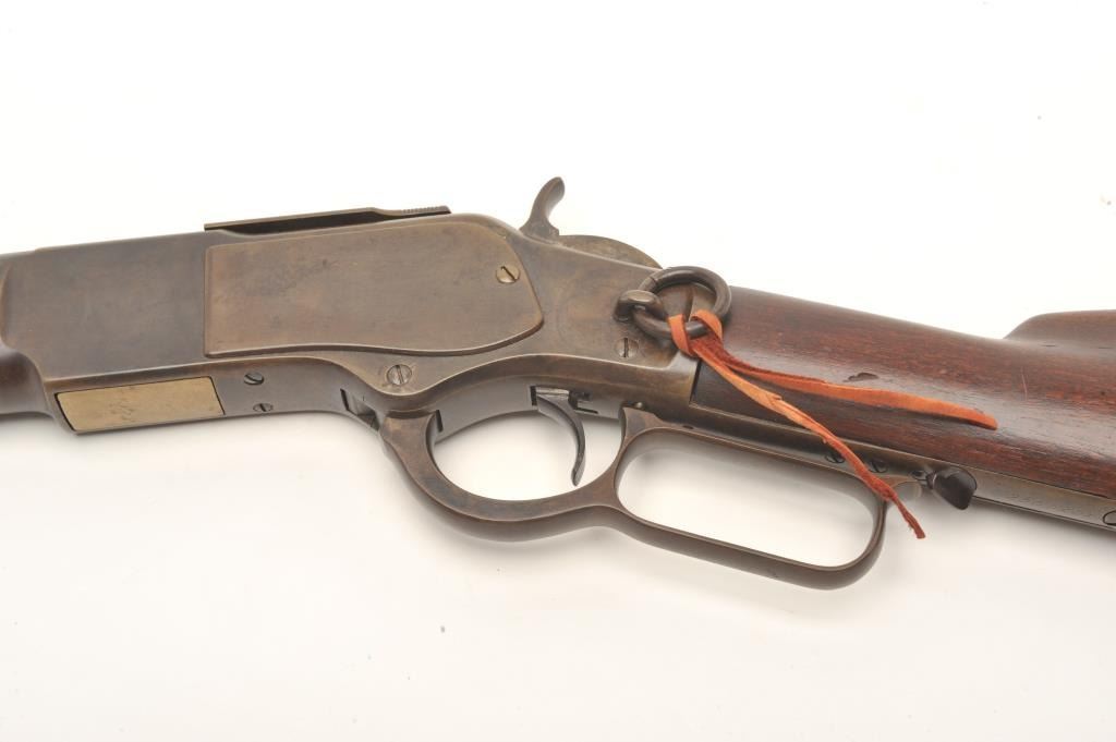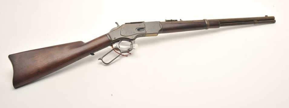Winchester Model 1873 SRC, scarce in .32-20 caliber, 20” barrel, wood stocks, no trap in butt plate, S/N 255525B, overall good to very good condition with a brown patina, good markings, good bore, crisp action and verygood wood stocks. (Antique). Est.: $2,500-$5,000.