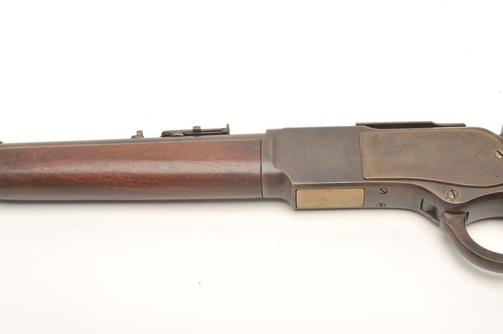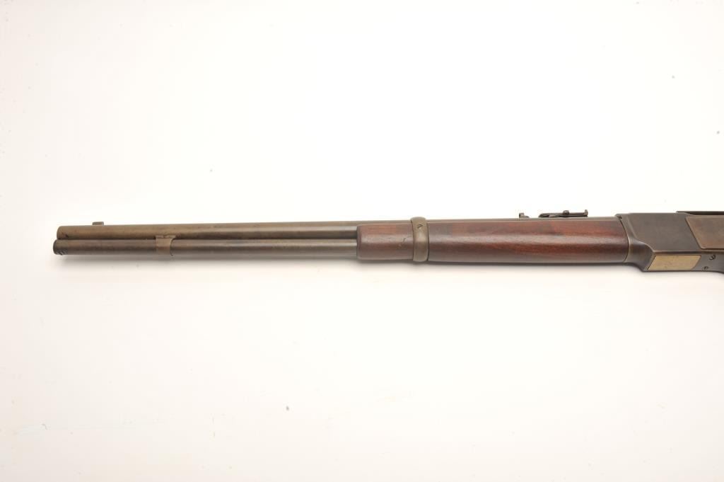 Lot 826 Winchester Model 1873 SRC, scarce in .32-20 caliber, 20” barrel, wood stocks, no trap in butt plat