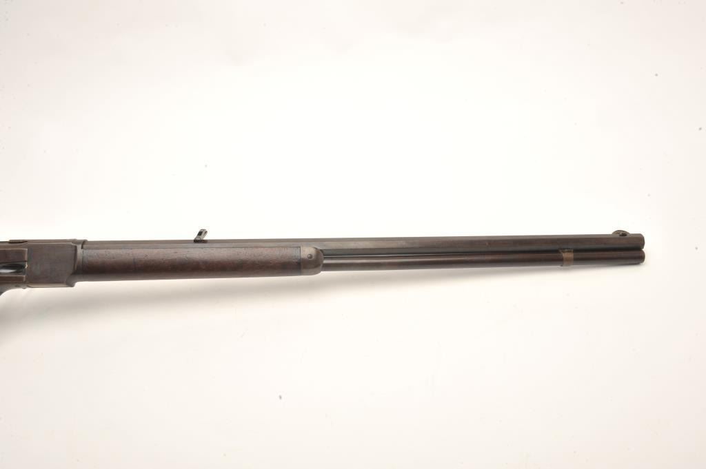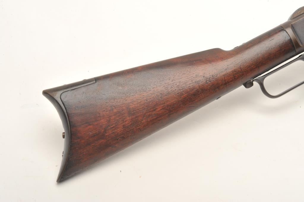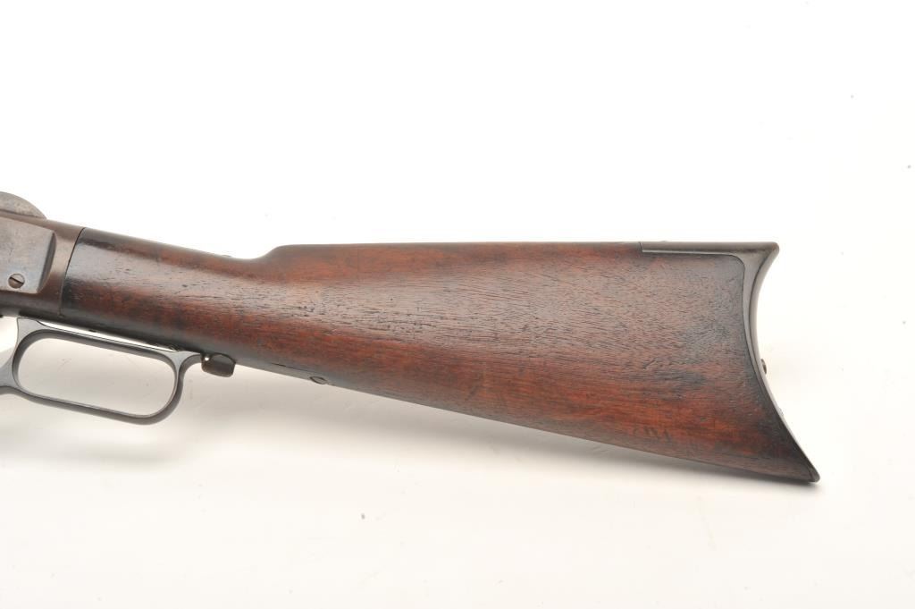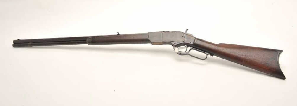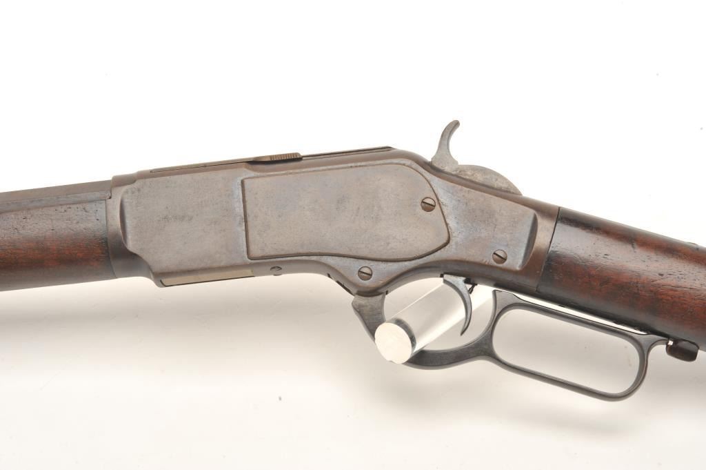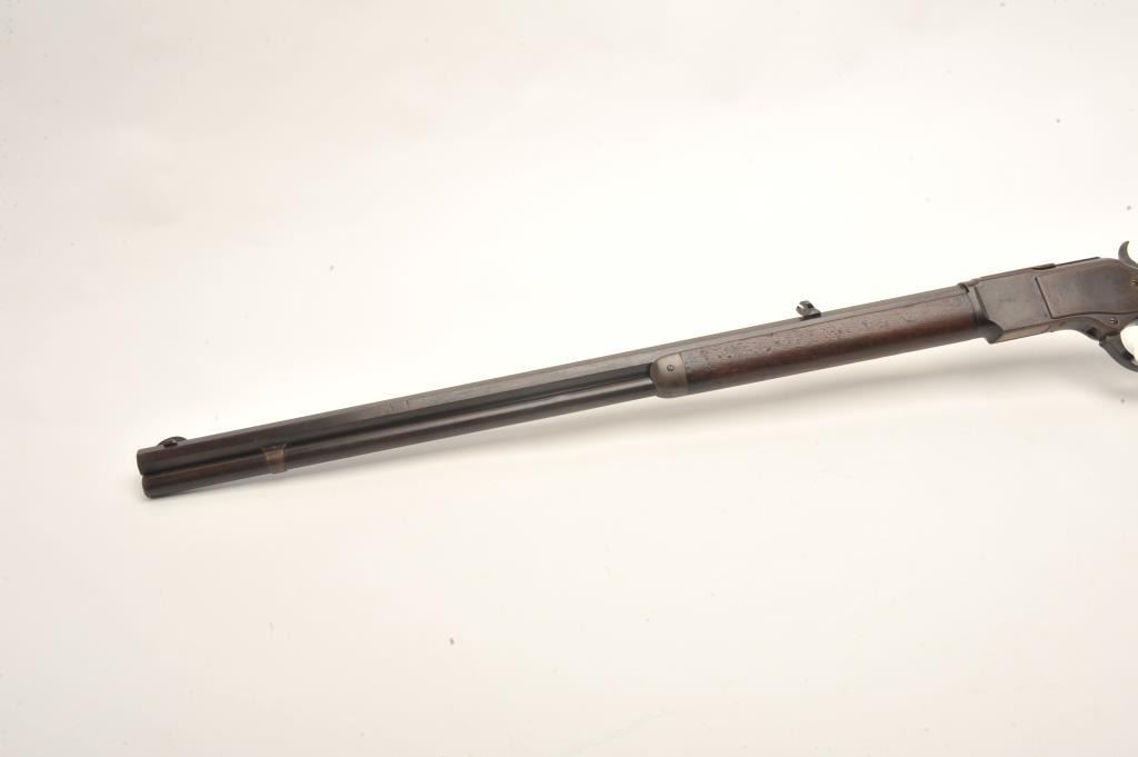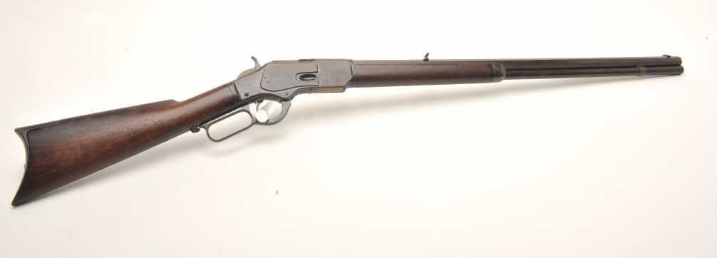 Lot 827 Winchester Model 1873 lever action rifle, .38 caliber, 26” octagon barrel, buckhorn rear sight, bl