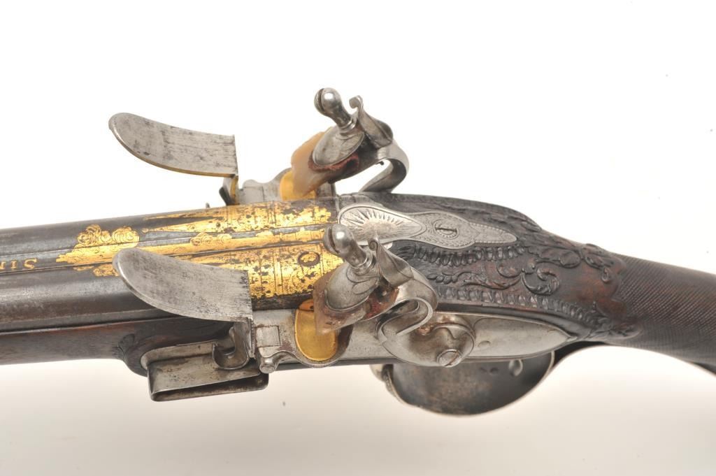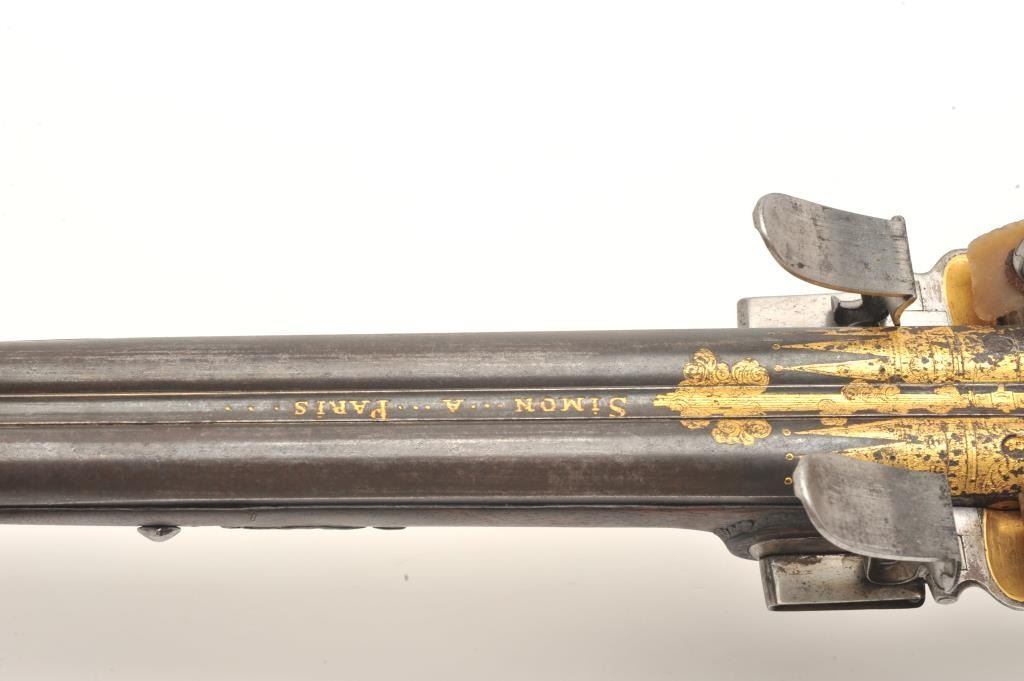 Lot 831 French late 18th century double flintlock shotgun signed “Simon A’ Paris” who held an appointment