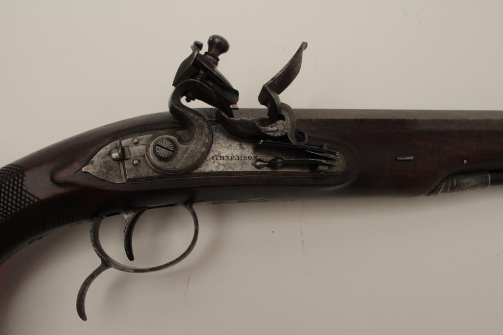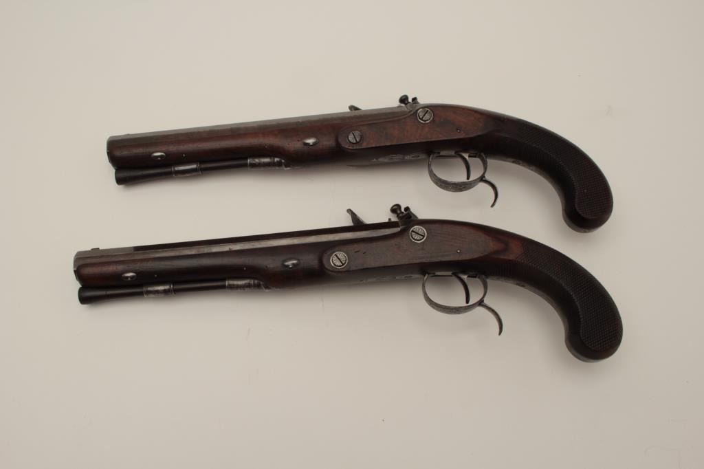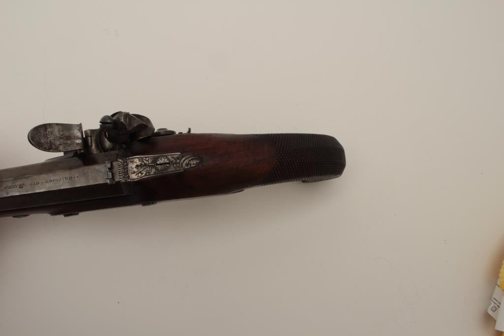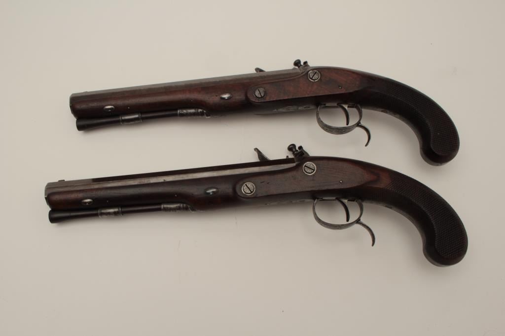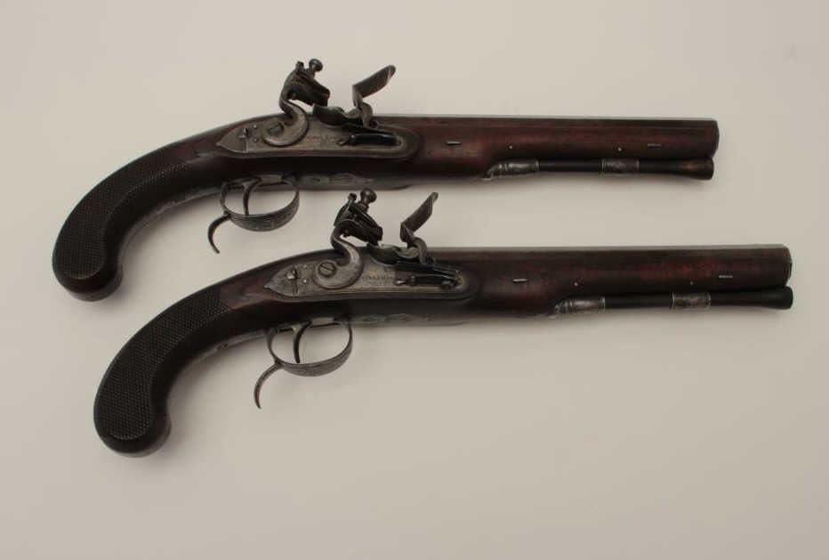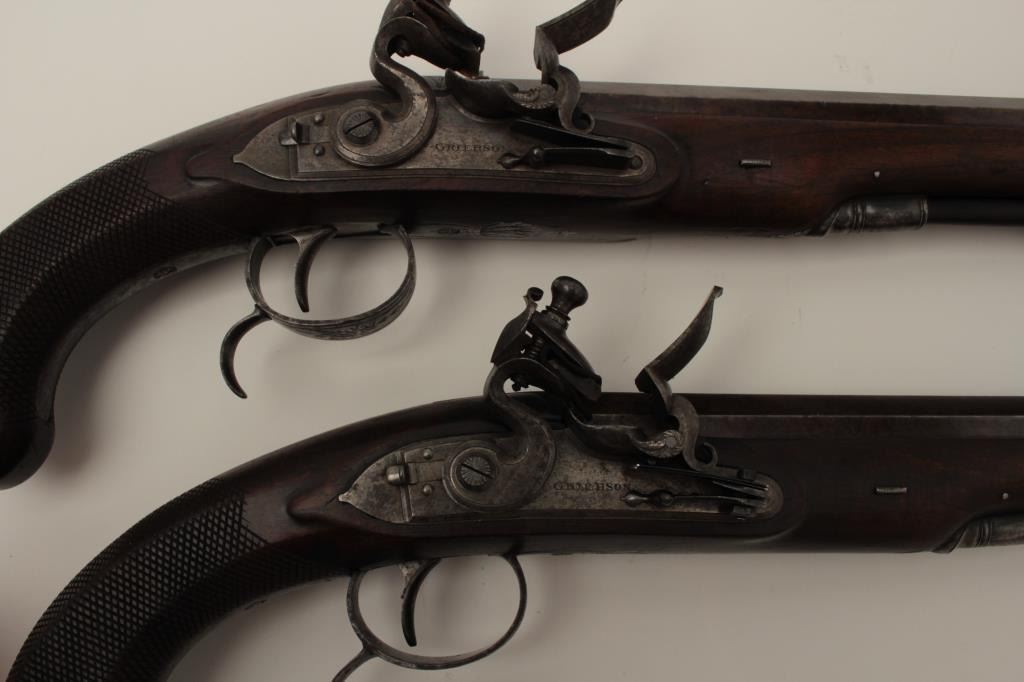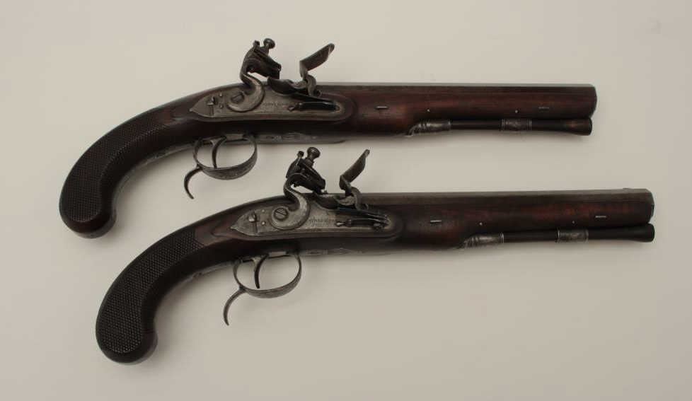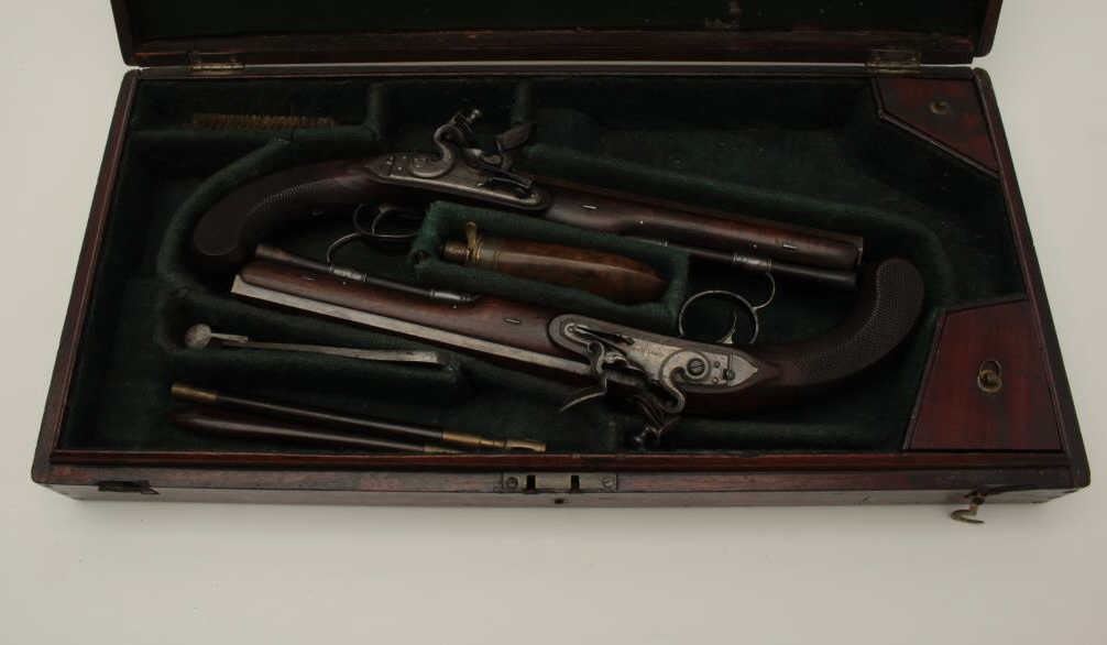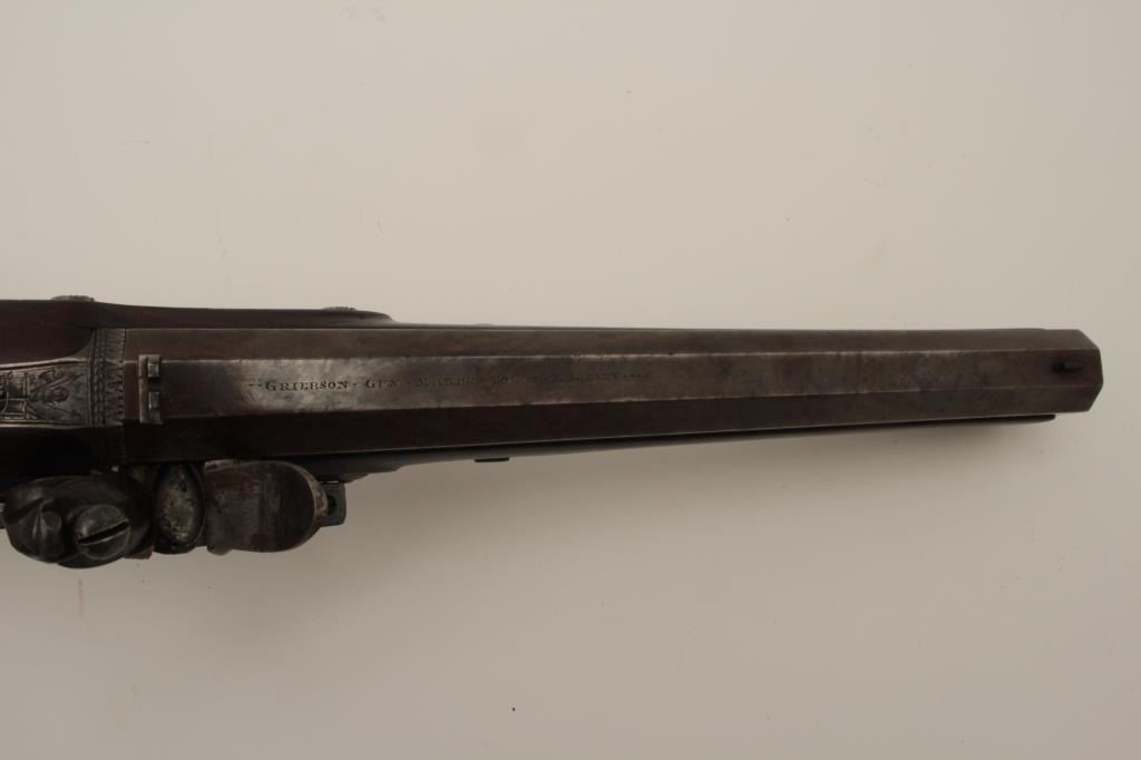 Lot 832 Pair of cased flintlock dueling pistols signed “Grierson” maker to his majesty circa about 1800. T