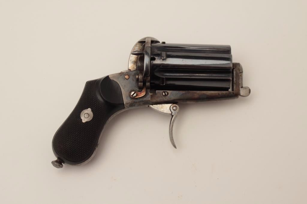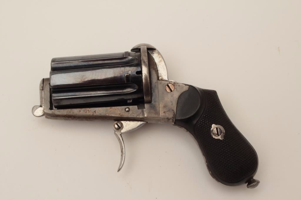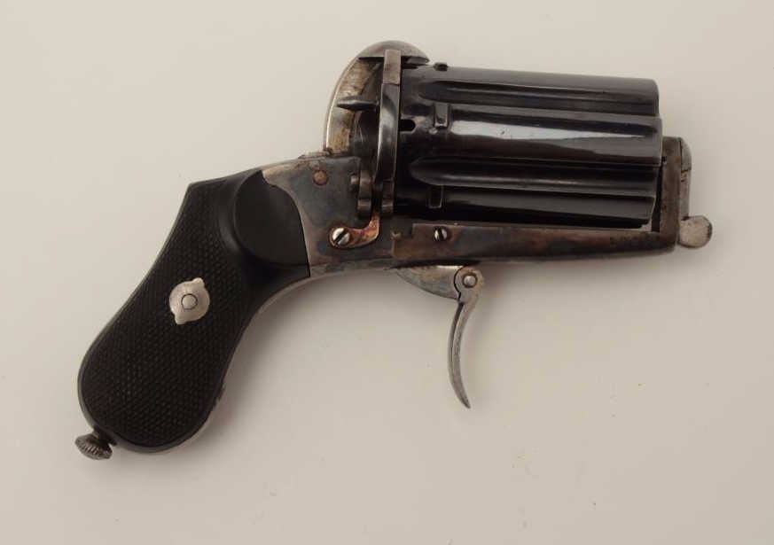 Lot 836 Exceptional large size pinfire “Apache” revolver, 9mm caliber, 2.25” barrels, blued cylinder and c