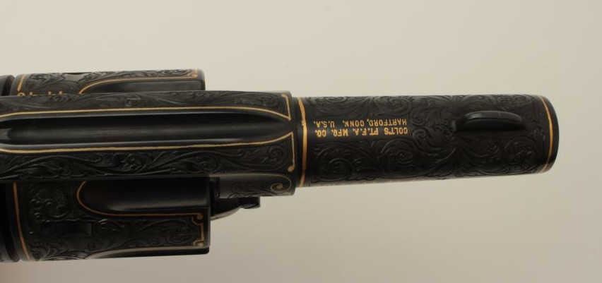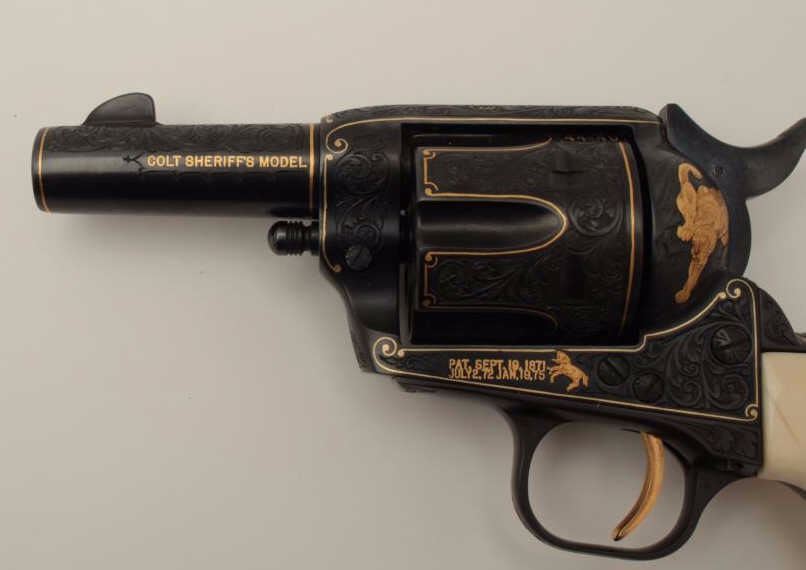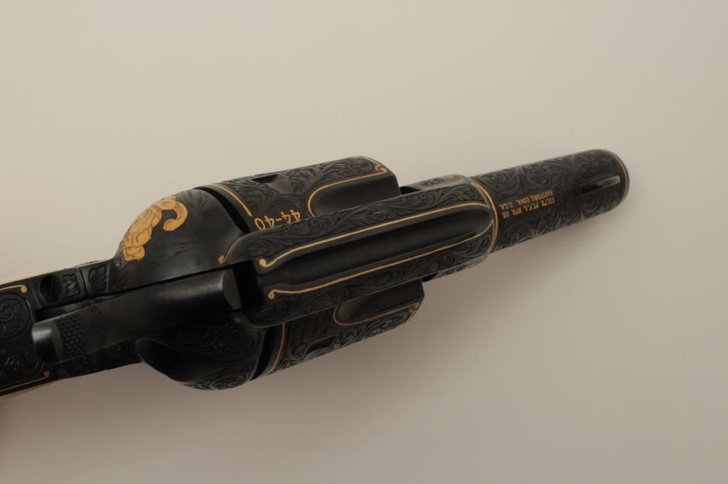 Lot 839 Colt Single Action Army Sheriffs Model .44-40 cal., 3" barrel, fully and finely gold inlaid by Ang