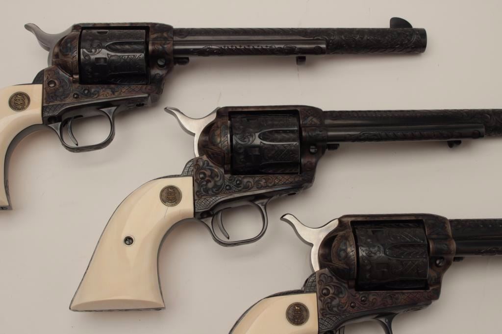 Lot 840 Colt Single Action Army 6-gun garniture consisting of six factory engraved D-Grade Colt Single Act
