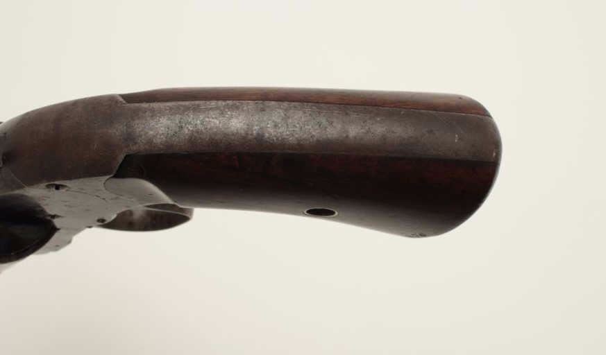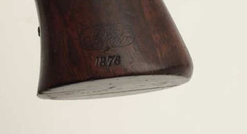 Smith & Wesson Martial Second Model Schofield single action revolver, .45 caliber, 7” barrel, blued finish, wood grips, S/N 3322, in overall very good to fine condition showing approximately 30% original blue withbalance gone to a plum brown patina, crisp action, very good to near fine bore, sharp markings and very good grips displaying clean inspector cartouches on both sides. (Antique). Est.: $4,000-$8,000.