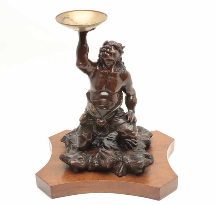 Lot 857 Japanese late Edo period bronze of oni (Demon Ghost) with gold shakado and fine patination by arti