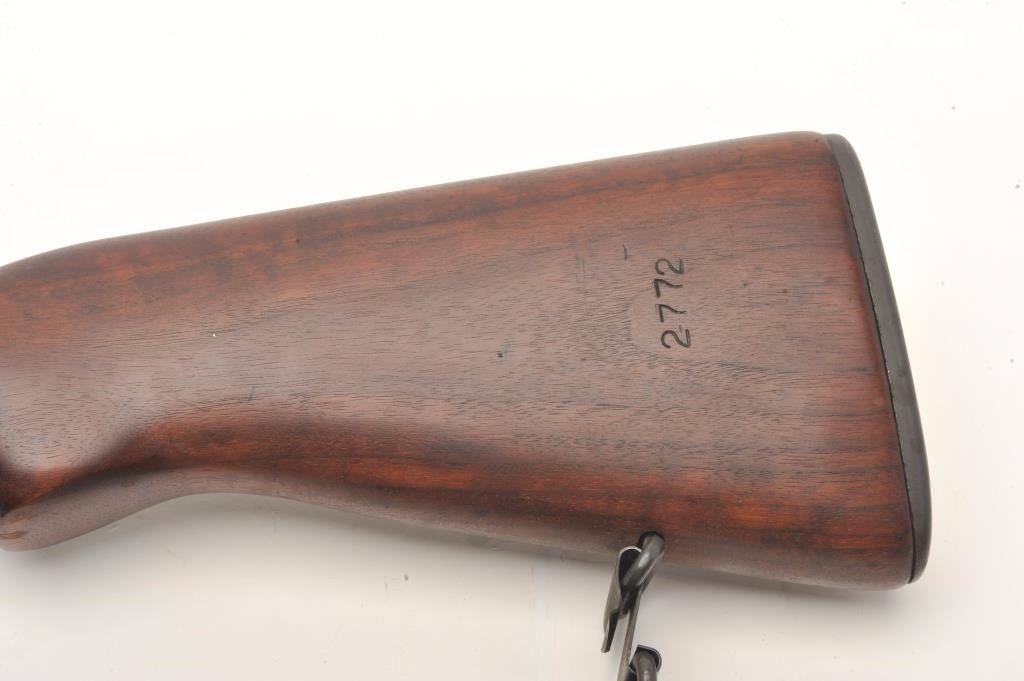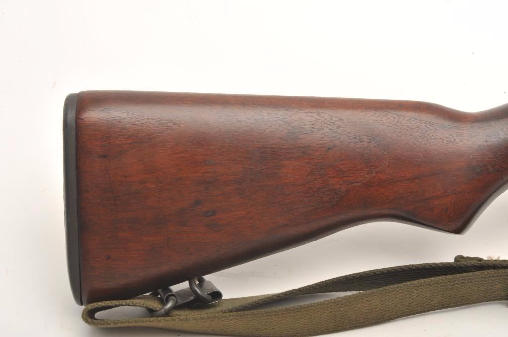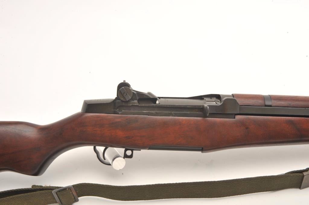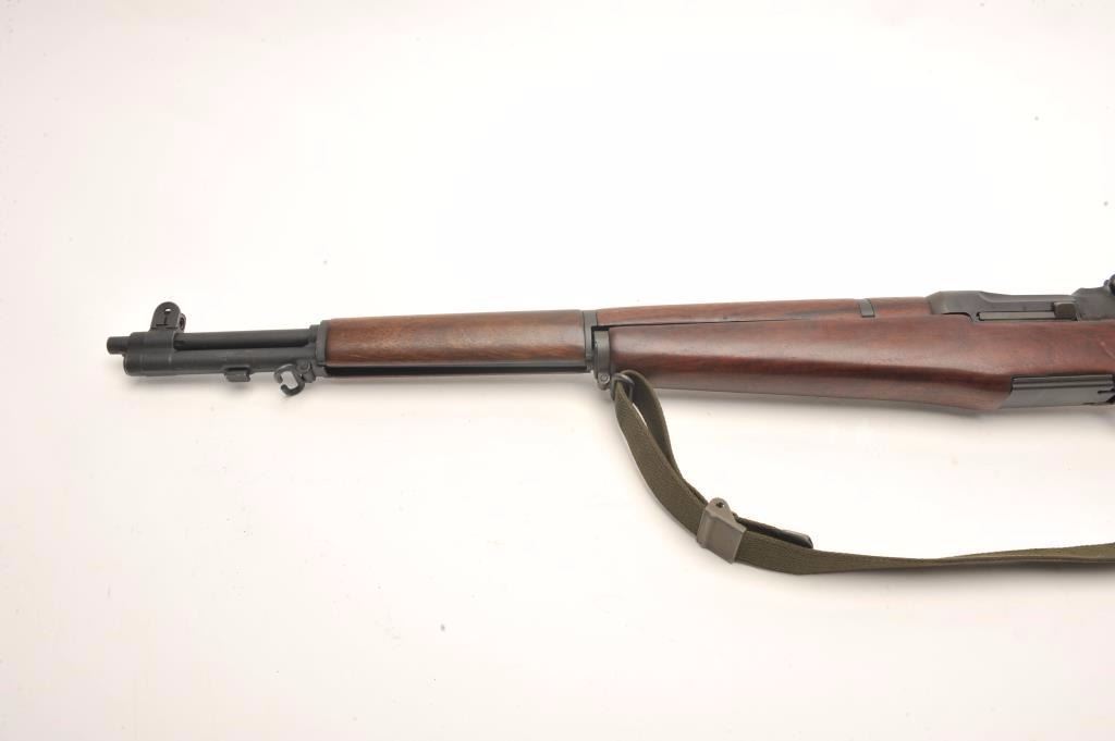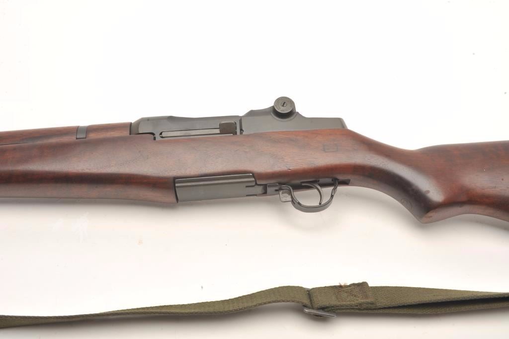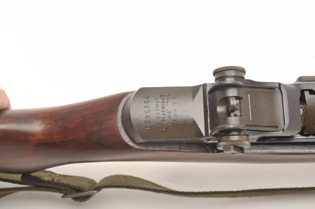 U.S. Springfield M1 Garand semi-automatic rifle, .30 caliber, 24” un-marked barrel, military finish, wood stock with woven sling, S/N 7005420, in overall very good to near fine condition with a fine bore, crispaction, sharp markings and very good + wood stock displaying circle P proof, partially visible inspector’s cartouche on left side of stock above trigger and "2772” stamped on left side of butt stock. (C&R). Est.: $700-$1,400.