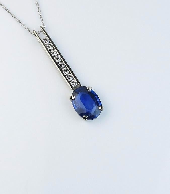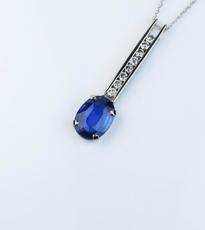 Lot 869 Exquisite ladies necklace featuring a Natural ‘Royal Blue’ color Sapphire weighing 4.45 carats and
